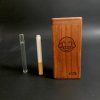 We include a clear glass one hitter, custom ground with a bevel to make loading it with herb easy: you just push and twist.