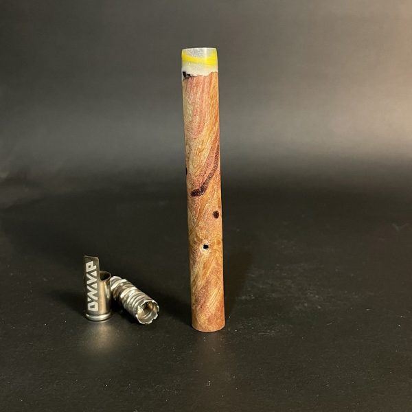 Transform your DynaVap experience with our Custom Stem, a perfect fit for all DynaVap vaporizer tips. Drawing on the galactic charm of our Futo Galaxy collection, this stem boasts stabilized burl wood with enchanting resin highlights. It’s a simple, yet stylish upgrade, ensuring ease of cleaning and a secure fit with its o-ring design.