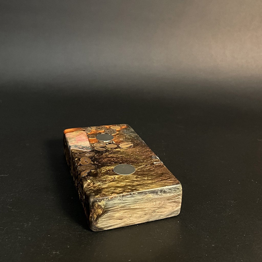 Experience the artful synergy of nature and innovation with our Futo Magnet Stands. Expertly crafted from stabilized burl wood, each stand highlights the wood’s natural, captivating patterns, reminiscent of celestial scenery. Enhanced with resin cast highlights, these stands not only exhibit the innate beauty of the wood but also feature custom-made rare earth ‘Ploymag’ centering magnets for secure and stylish display of your items. Part of our limited FutoStash collection, each stand is a distinct, serial-numbered piece, blending the elegance of natural wood with advanced magnetic functionality.