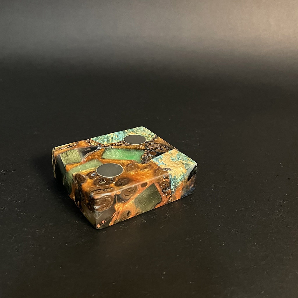Experience the artful synergy of nature and innovation with our Futo Magnet Stands. Expertly crafted from stabilized burl wood, each stand highlights the wood’s natural, captivating patterns, reminiscent of celestial scenery. Enhanced with resin cast highlights, these stands not only exhibit the innate beauty of the wood but also feature custom-made rare earth ‘Ploymag’ centering magnets for secure and stylish display of your items. Part of our limited FutoStash collection, each stand is a distinct, serial-numbered piece, blending the elegance of natural wood with advanced magnetic functionality.
