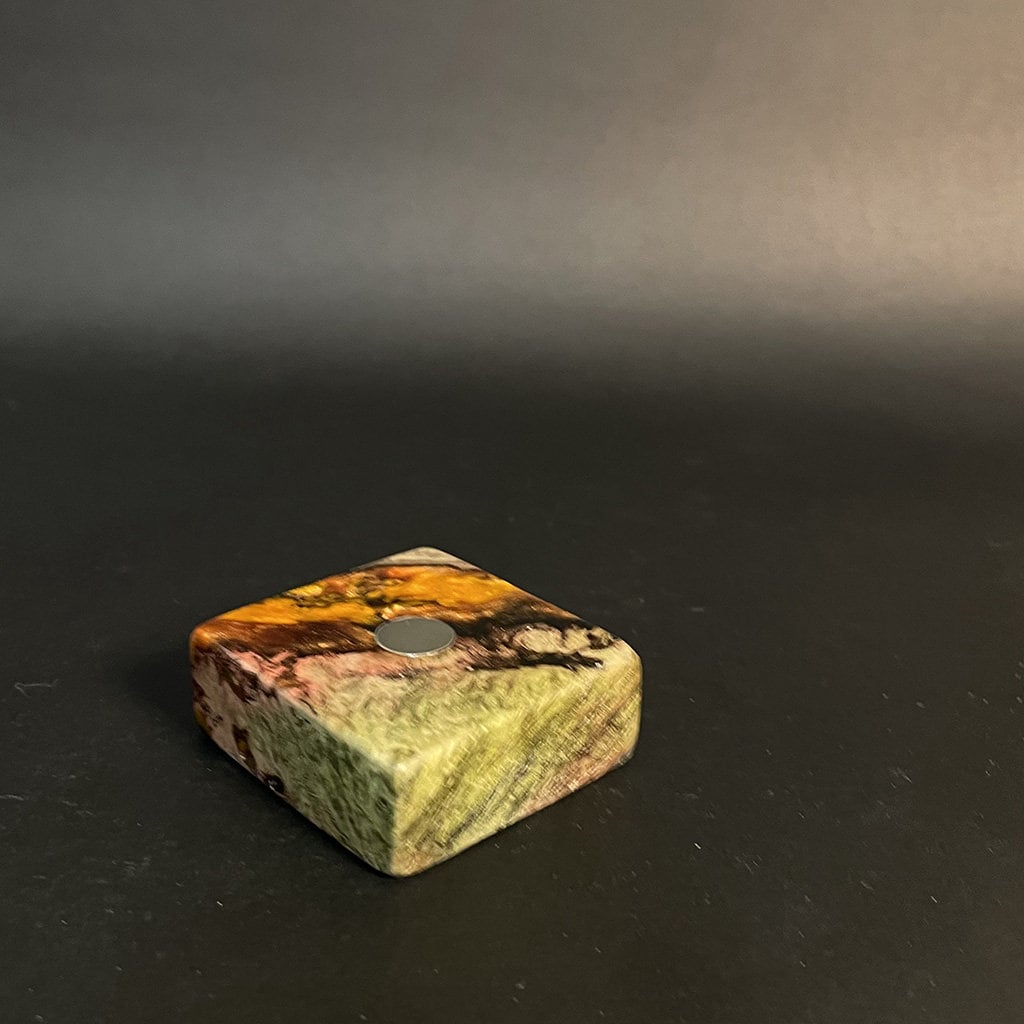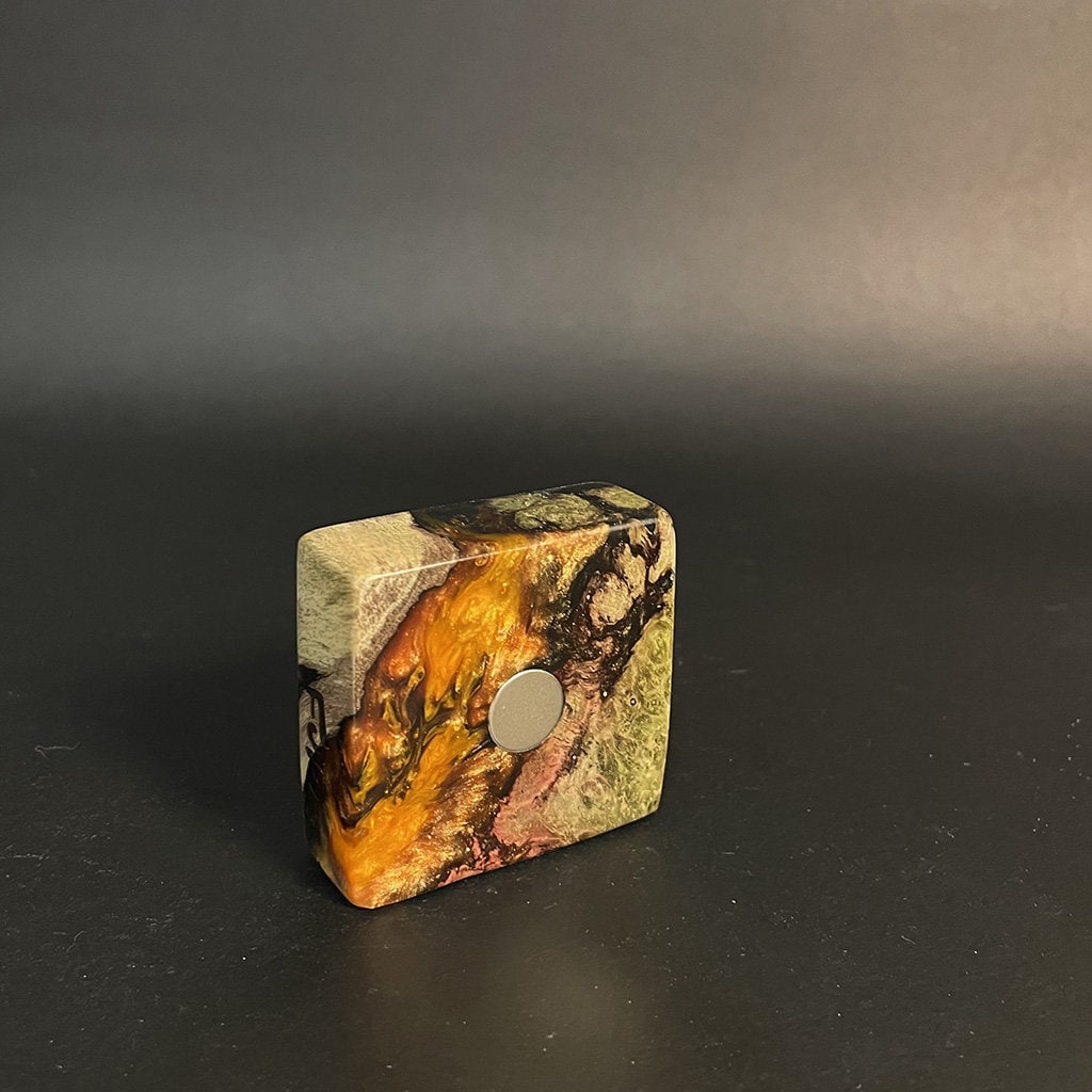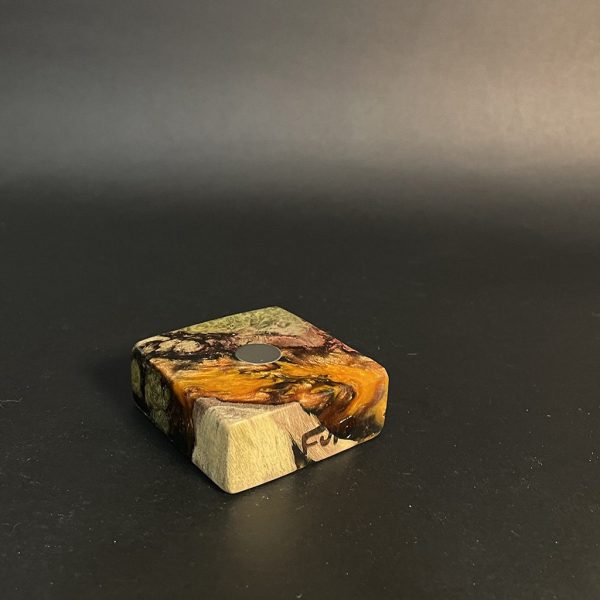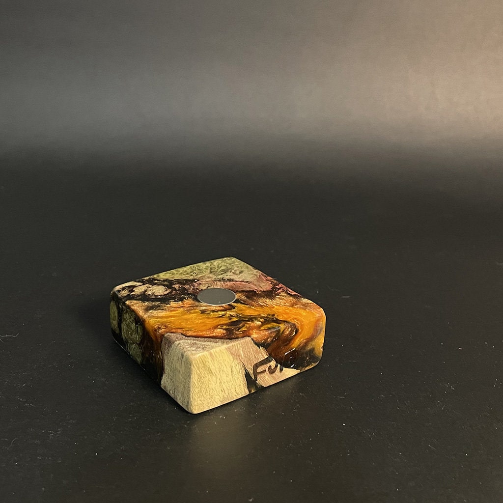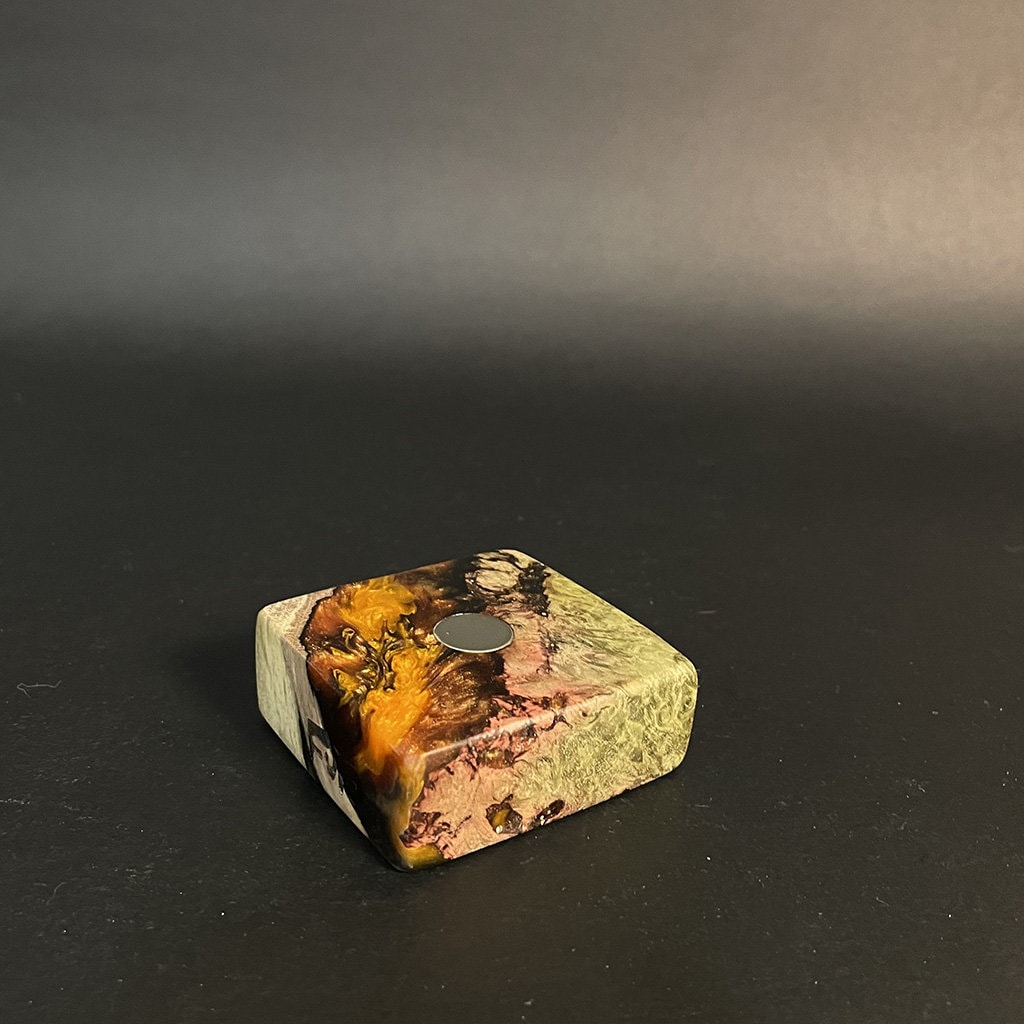 Experience the artful synergy of nature and innovation with our Futo Magnet Stands. Expertly crafted from stabilized burl wood, each stand highlights the wood’s natural, captivating patterns, reminiscent of celestial scenery. Enhanced with resin cast highlights, these stands not only exhibit the innate beauty of the wood but also feature custom-made rare earth ‘Ploymag’ centering magnets for secure and stylish display of your items. Part of our limited FutoStash collection, each stand is a distinct, serial-numbered piece, blending the elegance of natural wood with advanced magnetic functionality.