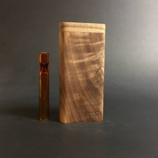 FutoStash G #2617 – Curly Walnut – Large Glass One Hitter – 12mm – Wood Handle Stash Tool – One Hitter Box – Dugout