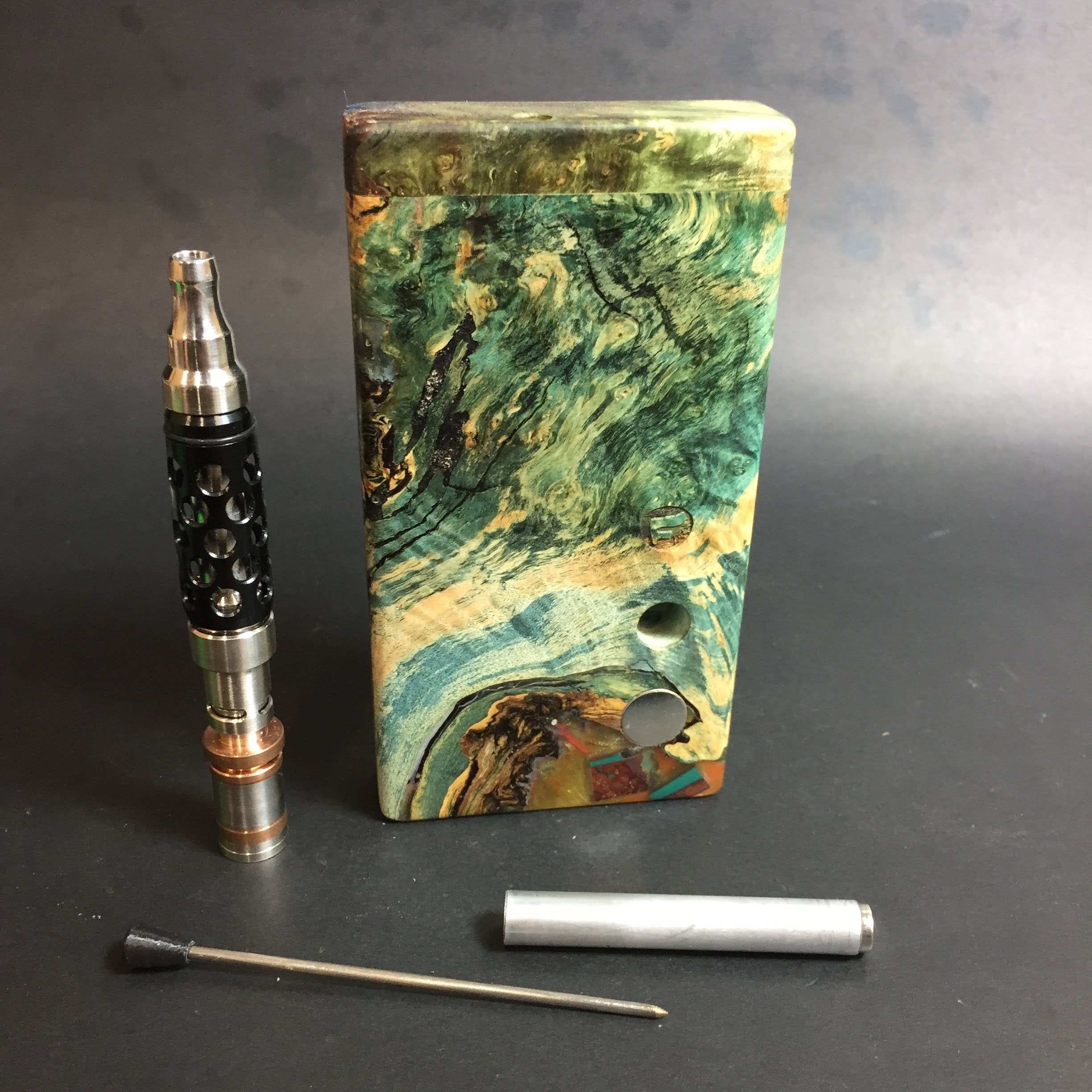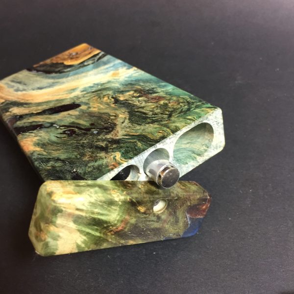 Futo Galaxy Burl Stashes are out of this world stabilized burl wood with resin cast accents. The stabilization process hardens the burl wood and if dyes are added brings out amazing natural patters in the wood – some times they look cosmic in origin.