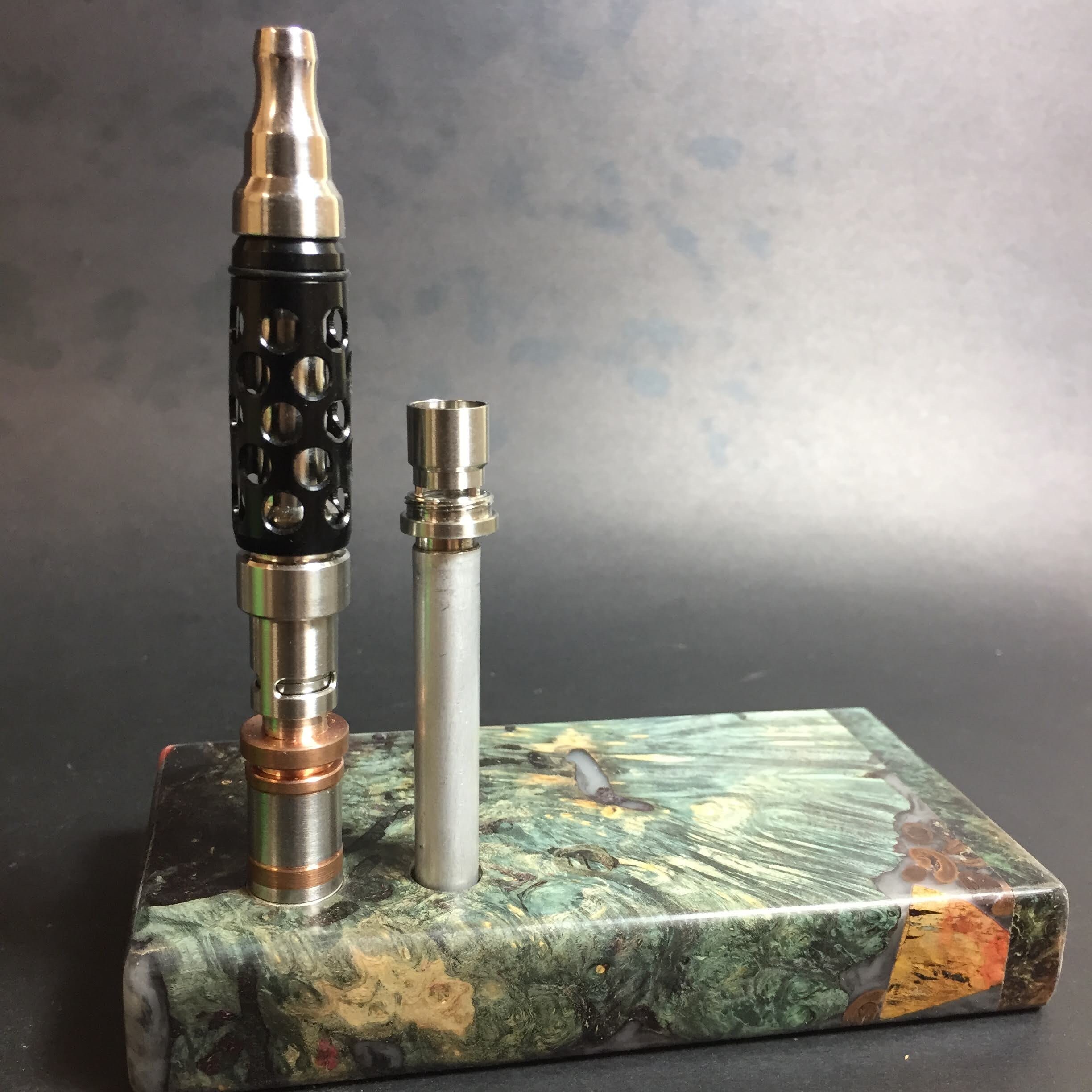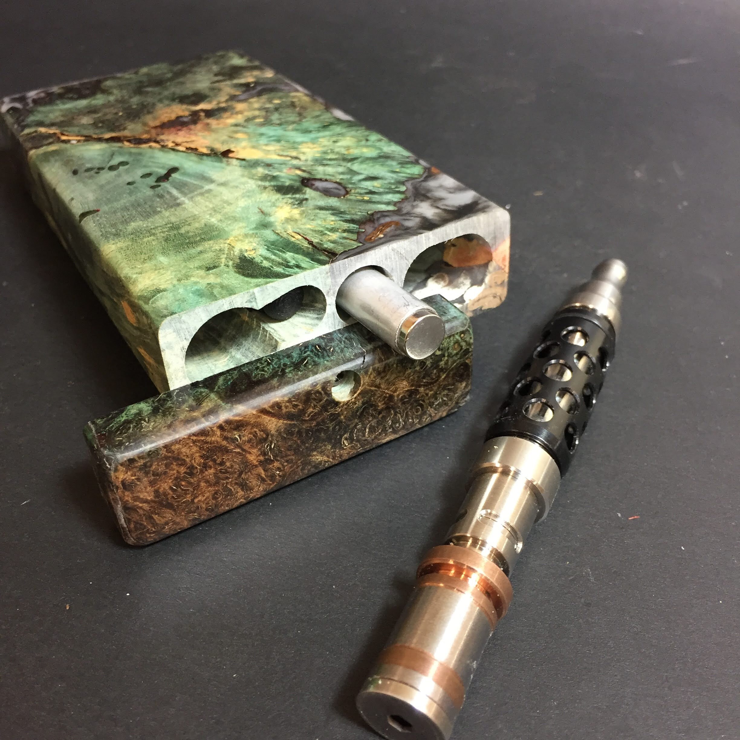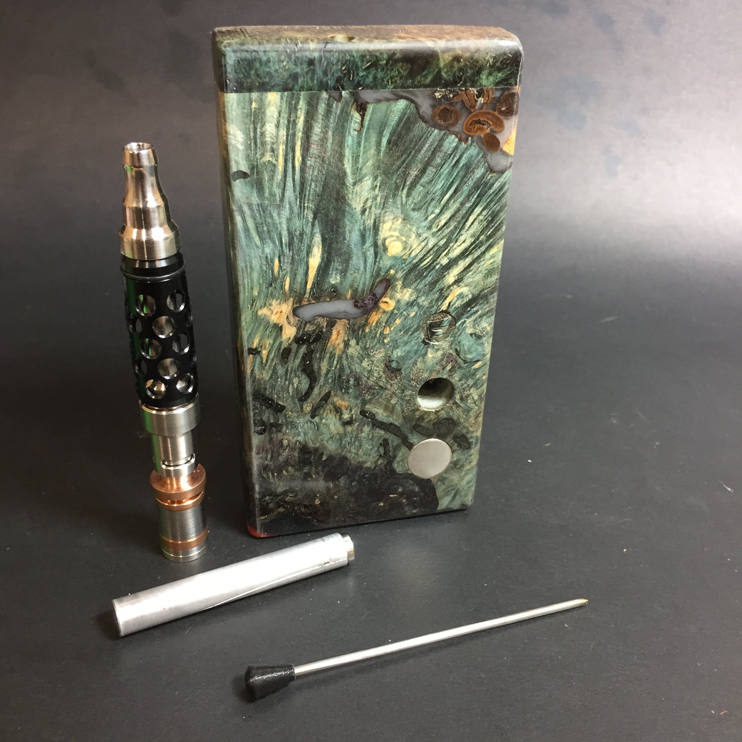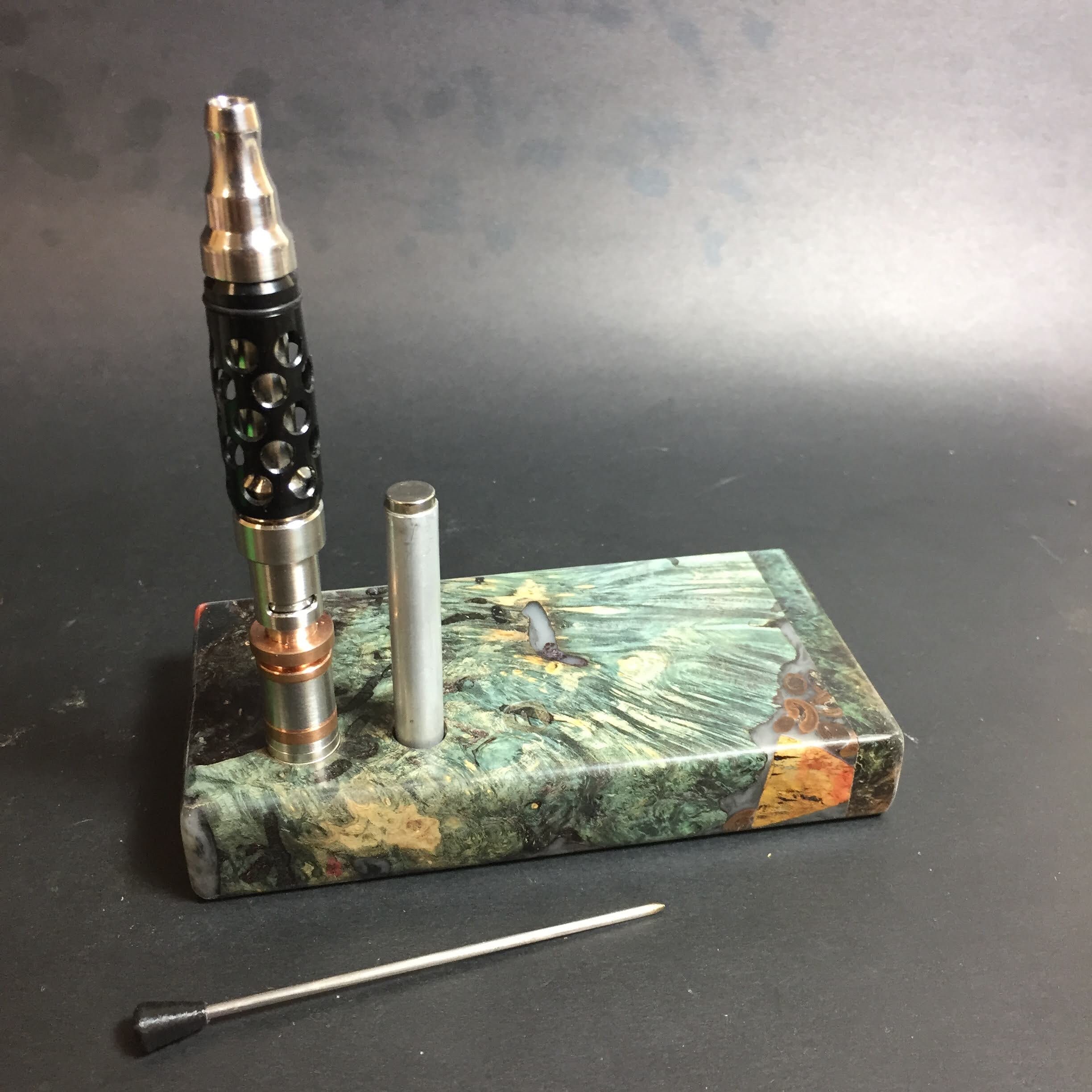 Futo Galaxy Burl Stashes are out of this world stabilized burl wood with resin cast accents. The stabilization process hardens the burl wood and if dyes are added brings out amazing natural patters in the wood – some times they look cosmic in origin.