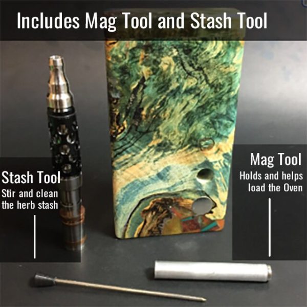 – Magnet tool to hold the cap and let you load it in your stash (Keep herb loose with stash tool to facilitate easy loading)