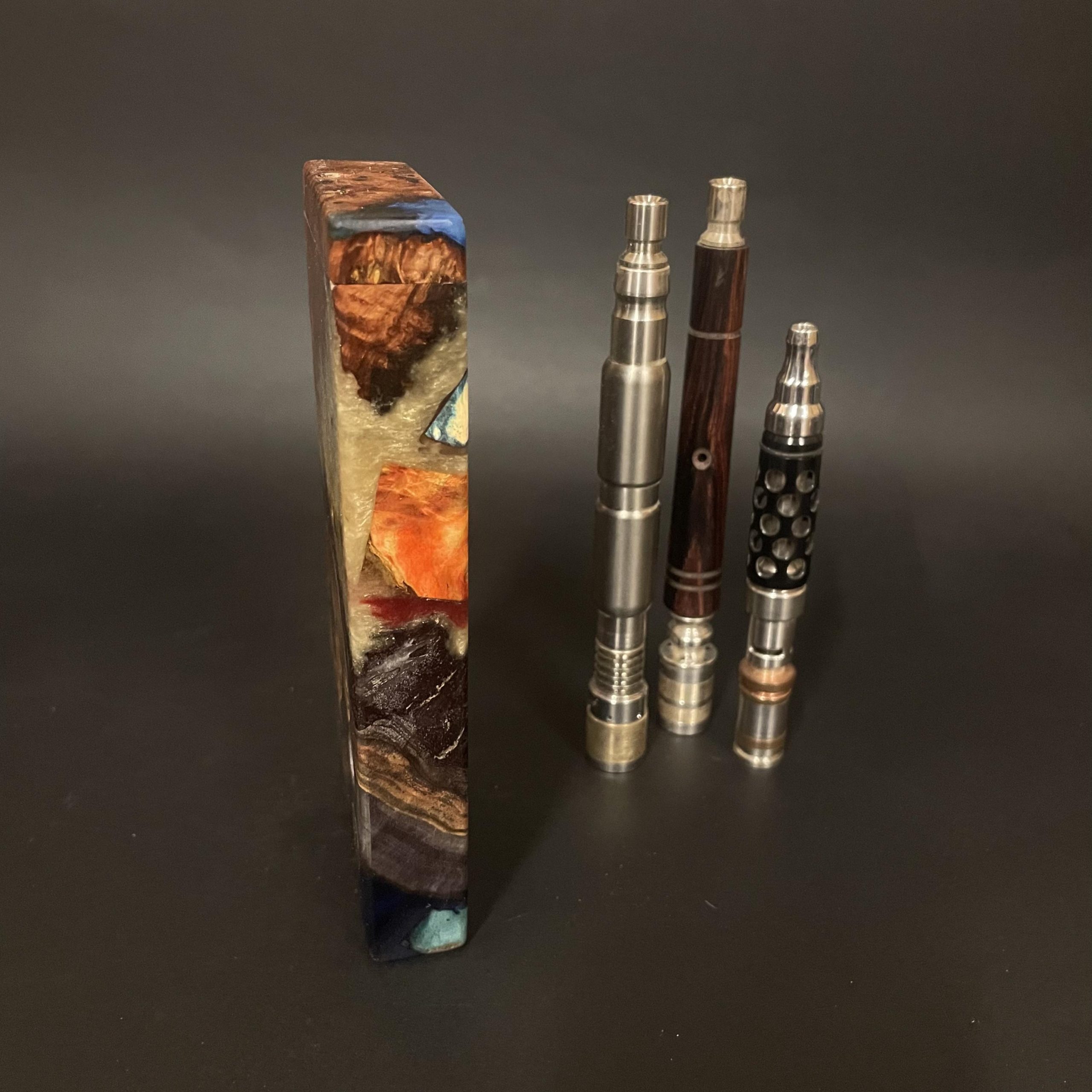Experience the seamless integration of natural beauty and artistic design with our Futo Galaxy Burl Stashes. Made from stabilized burl wood and accented with resin cast details, each piece highlights the intrinsic patterns of the wood. With the addition of dyes, these patterns come to life, often bearing a striking resemblance to cosmic imagery. Our FutoStash range features a limited edition of uniquely numbered items, each a testament to the subtle elegance of natural forms and artistic expression.
