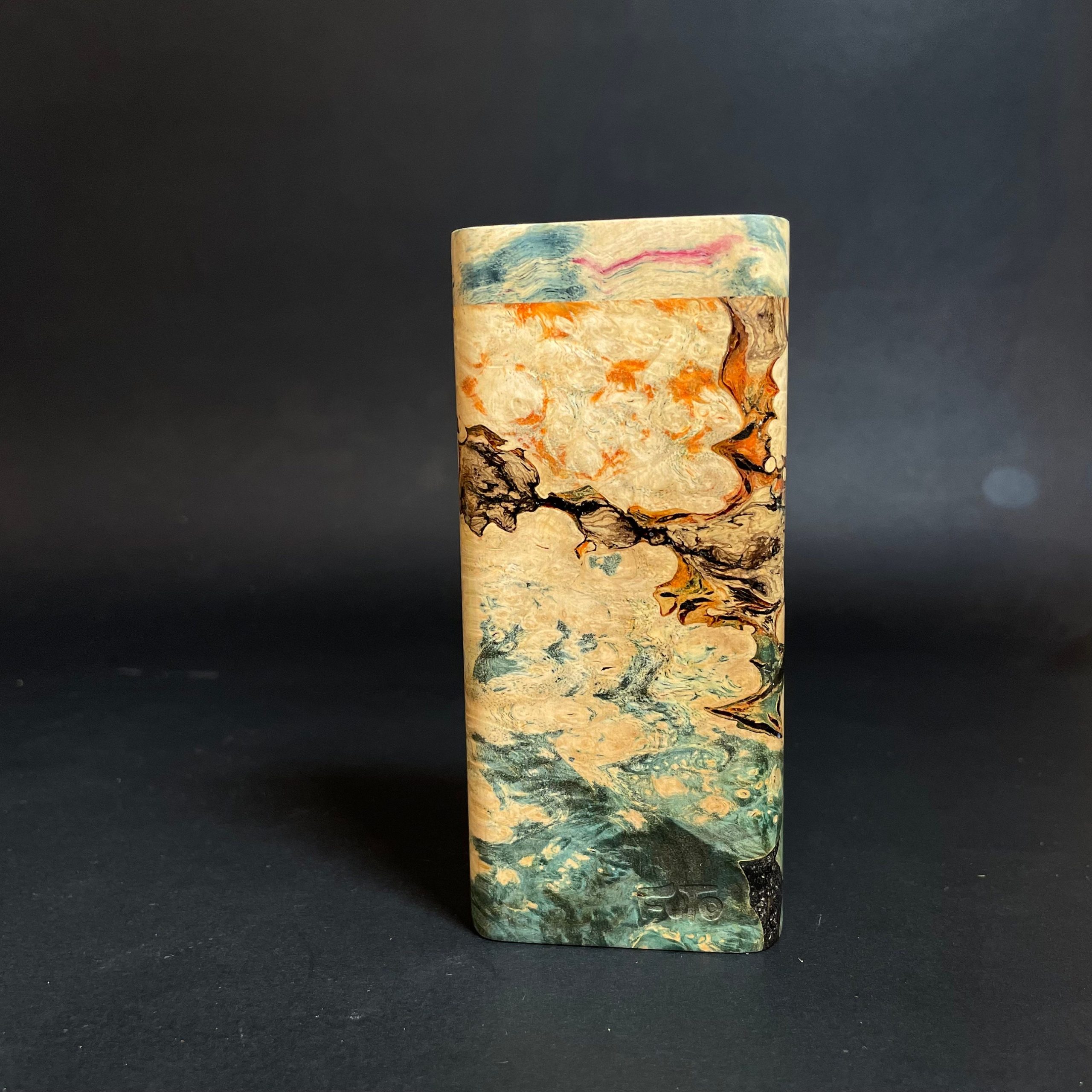 Futo Galaxy Burl Stashes are out of this world stabilized burl wood with resin cast accents. The stabilization process hardens the burl wood and if dyes are added brings out amazing natural patters in the wood – some times they look cosmic in origin.