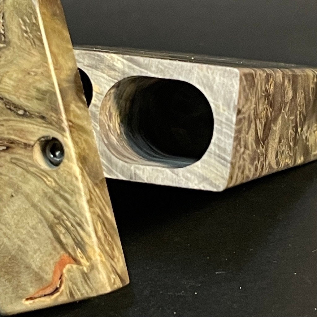 Experience the unique blend of art and nature with our Futo Galaxy Burl Stashes. These stashes, crafted from stabilized burl wood and enhanced with resin cast highlights, showcase the innate beauty of wood. Our stabilization process, particularly when combined with dyes, reveals captivating natural patterns that resemble celestial scenery. The FutoStash collection offers a limited series of these distinct, numbered pieces, where each merges the elegance of nature with a touch of cosmic wonder.