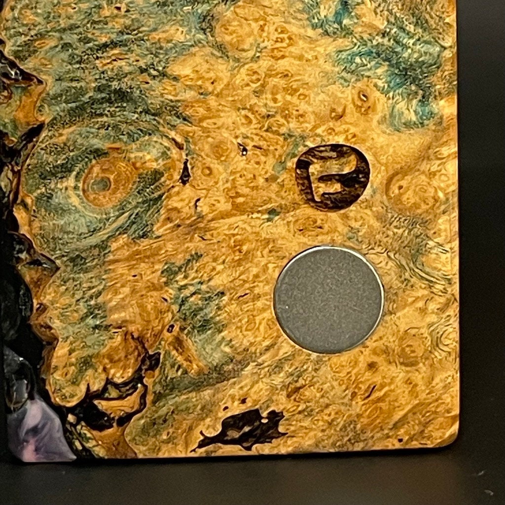 Experience the seamless integration of natural beauty and artistic design with our Futo Galaxy Burl Stashes. Made from stabilized burl wood and accented with resin cast details, each piece highlights the intrinsic patterns of the wood. With the addition of dyes, these patterns come to life, often bearing a striking resemblance to cosmic imagery. Our FutoStash range features a limited edition of uniquely numbered items, each a testament to the subtle elegance of natural forms and artistic expression.