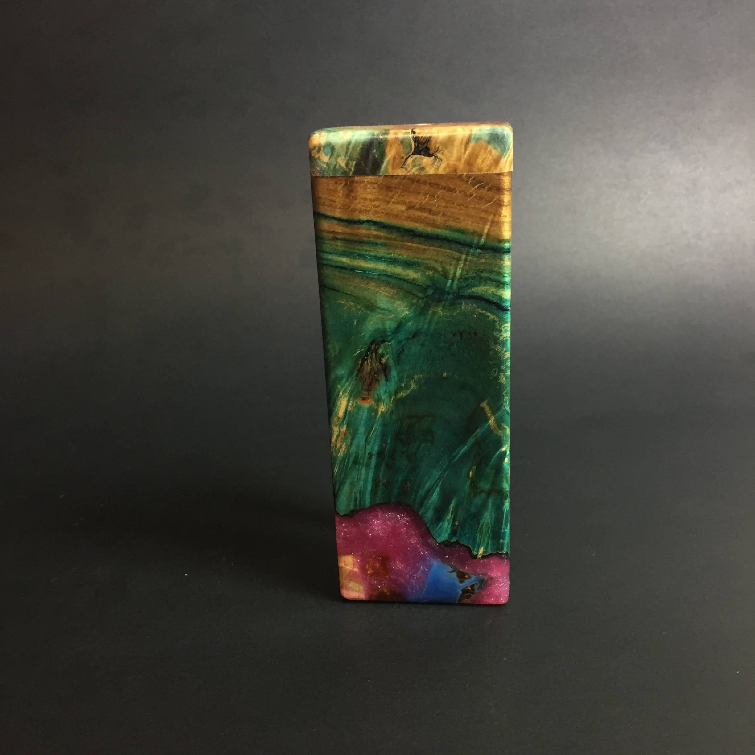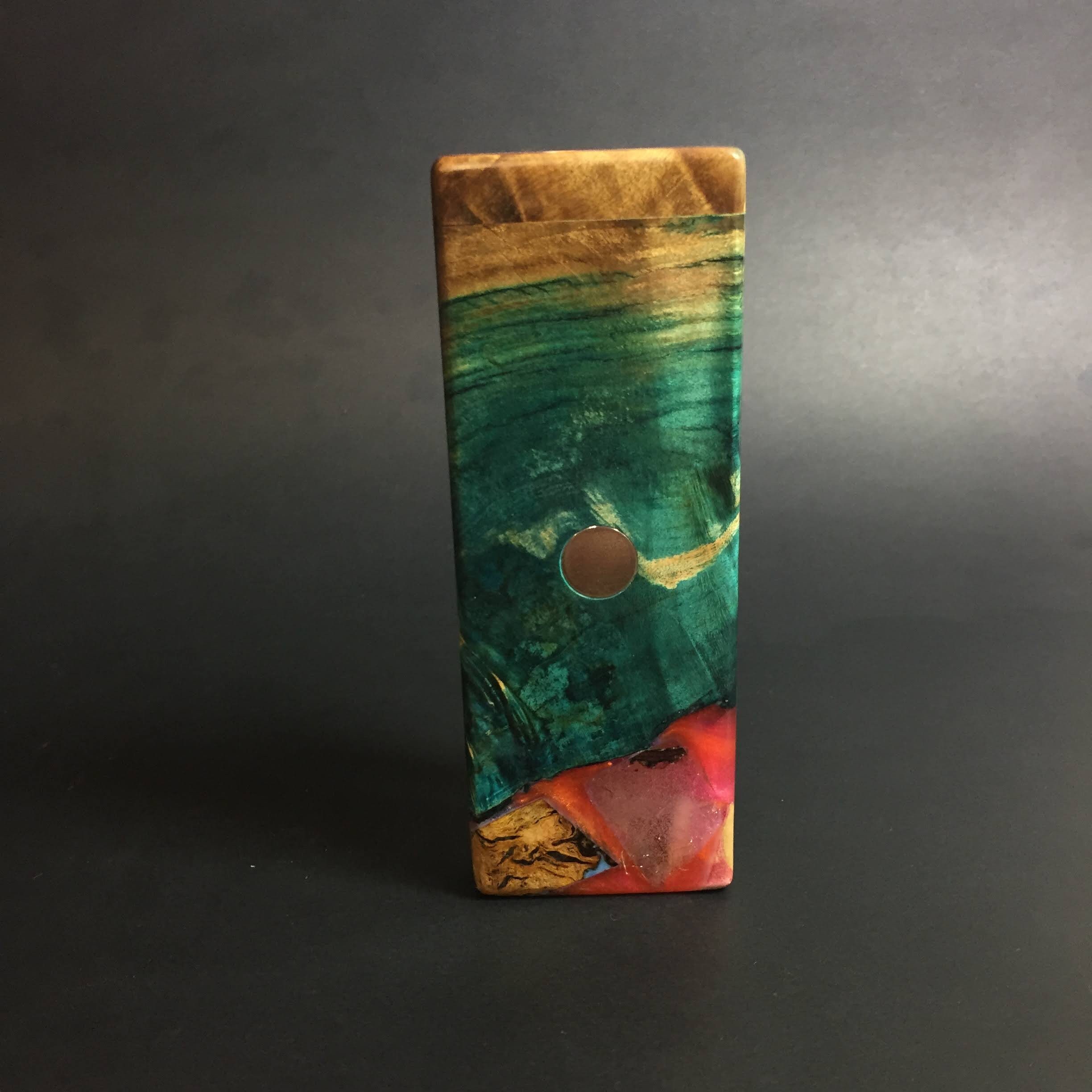 Futo Galaxy Burl Stashes are out of this world stabilized burl wood with resin cast accents. The stabilization process hardens the burl wood and if dyes are added brings out amazing natural patters in the wood – some times they look cosmic in origin.