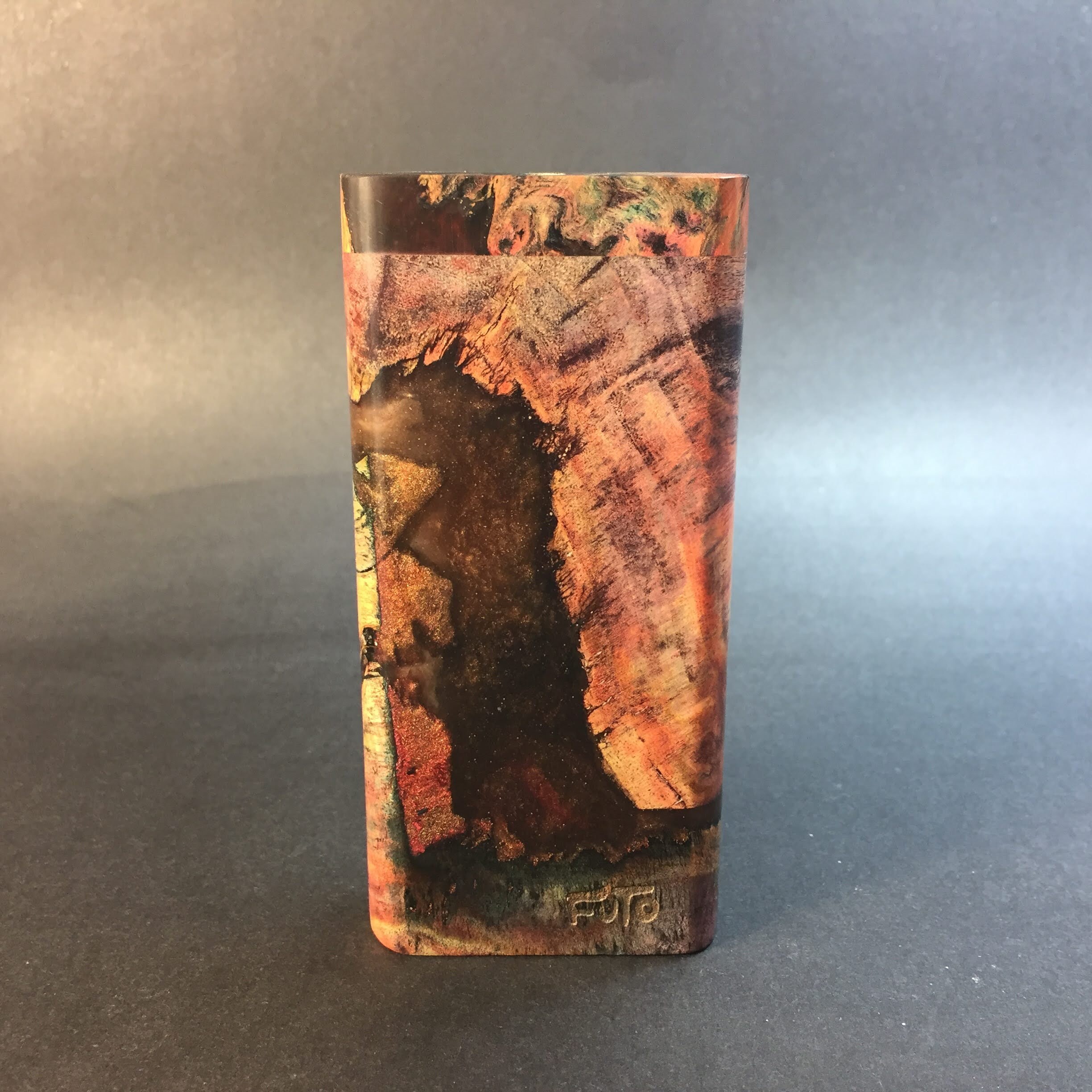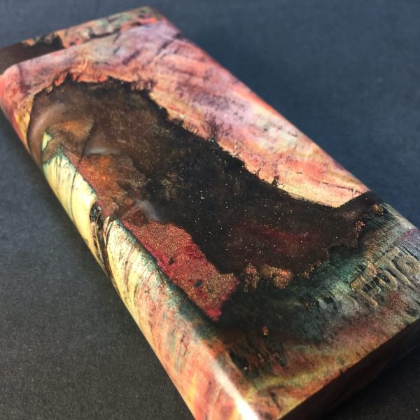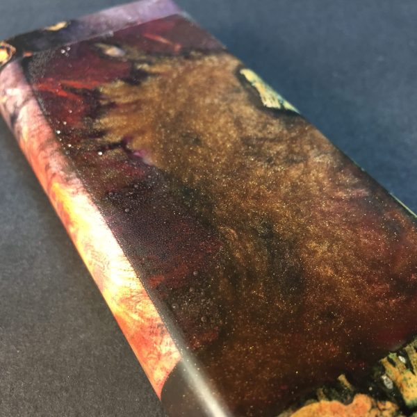 Futo Galaxy Burl Stashes are out of this world stabilized burl wood with resin cast accents. The stabilization process hardens the burl wood and if dyes are added brings out amazing natural patters in the wood – some times they look cosmic in origin.
