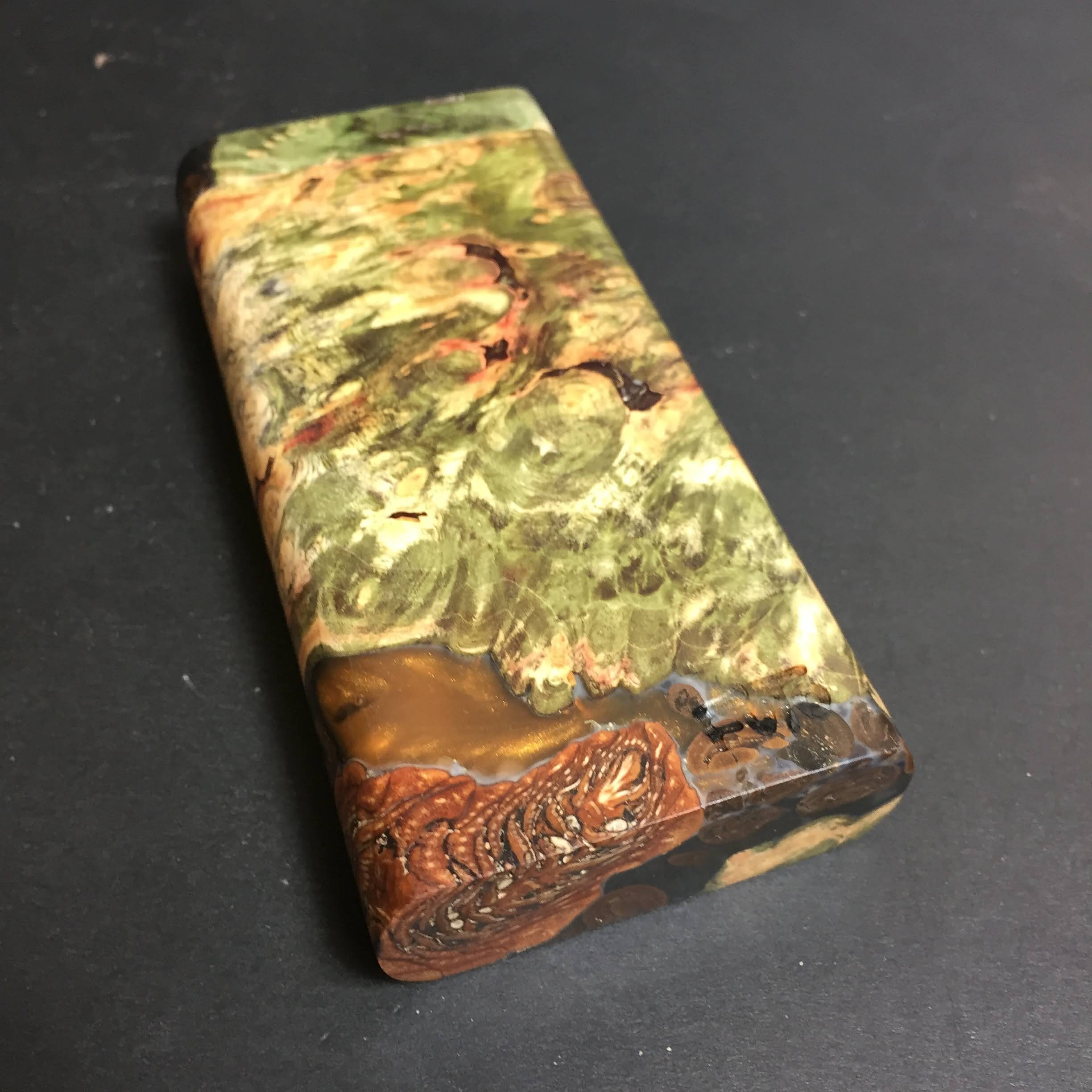 Futo Galaxy Burl Stashes are out of this world stabilized burl wood with resin cast accents. The stabilization process hardens the burl wood and if dyes are added brings out amazing natural patters in the wood – some times they look cosmic in origin.
