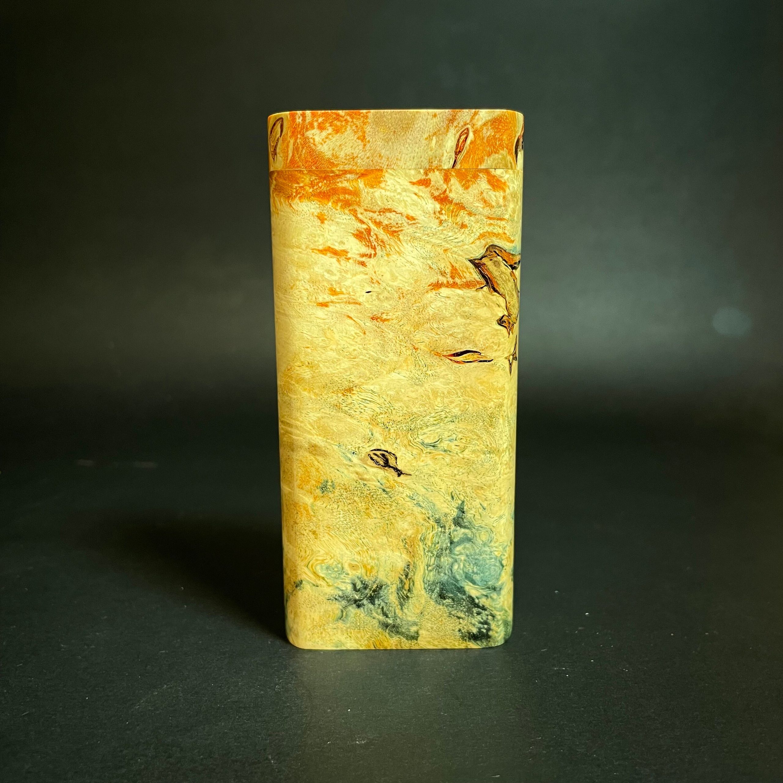 Futo Galaxy Burl Stashes are out of this world stabilized burl wood with resin cast accents. The stabilization process hardens the burl wood and if dyes are added brings out amazing natural patters in the wood – some times they look cosmic in origin.