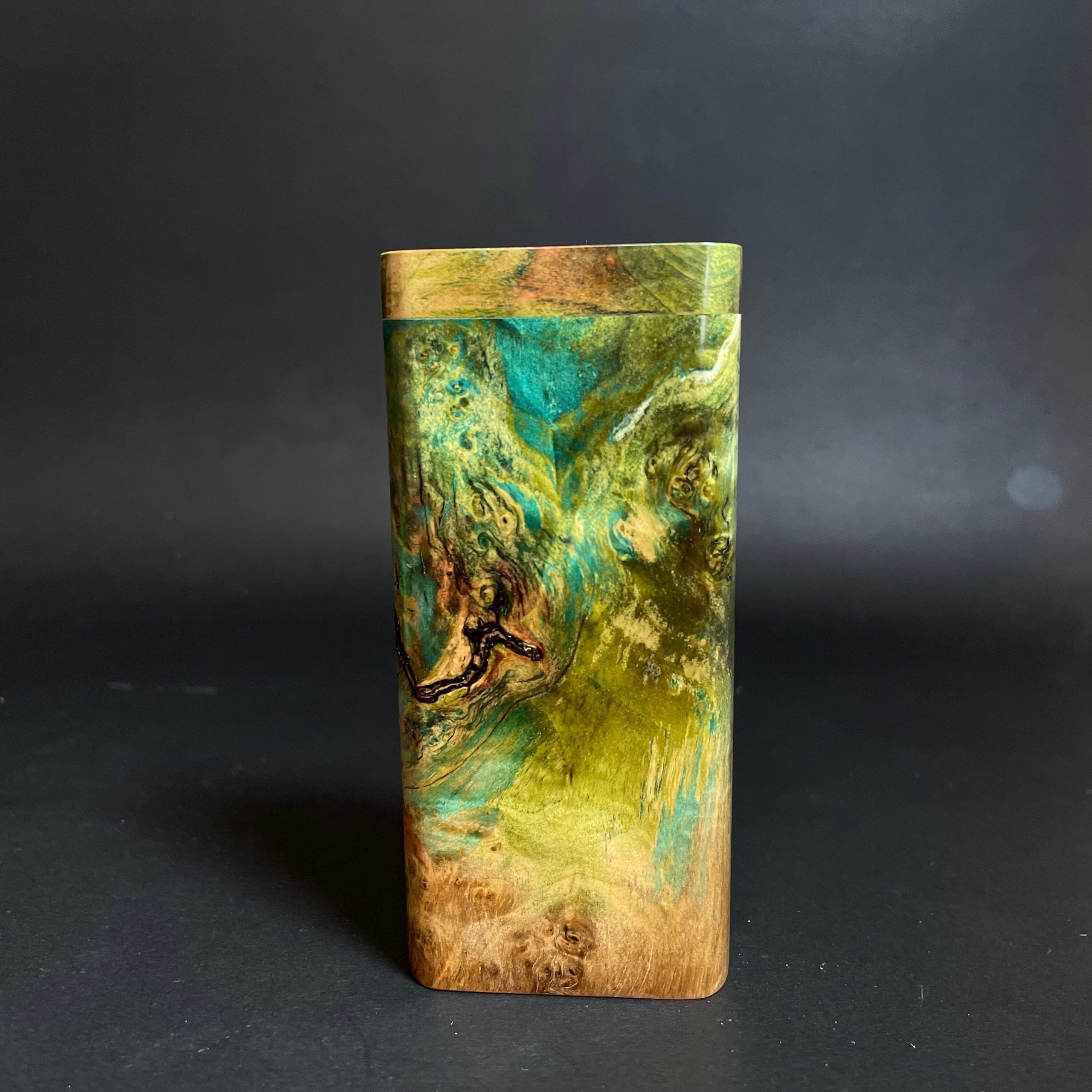 Futo Galaxy Burl Stashes are out of this world stabilized burl wood with resin cast accents. The stabilization process hardens the burl wood and if dyes are added brings out amazing natural patters in the wood – some times they look cosmic in origin.