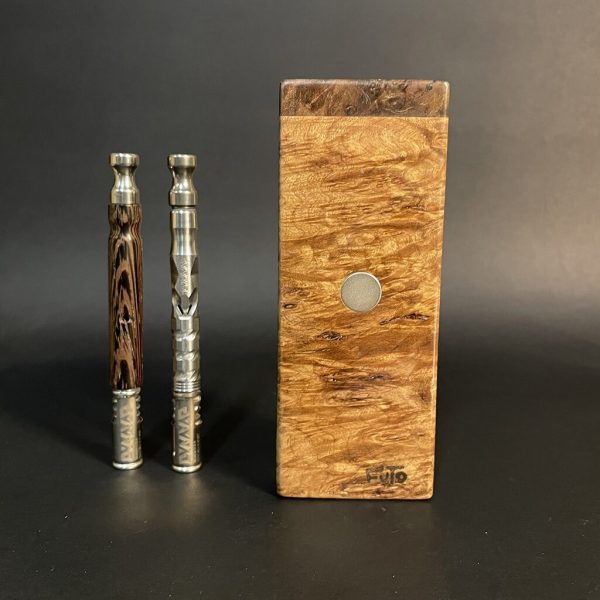 Experience the unique blend of art and nature with our Futo Galaxy Burl Stashes. These stashes, crafted from stabilized burl wood and enhanced with resin cast highlights, showcase the innate beauty of wood. Our stabilization process, particularly when combined with dyes, reveals captivating natural patterns that resemble celestial scenery. The FutoStash collection offers a limited series of these distinct, numbered pieces, where each merges the elegance of nature with a touch of cosmic wonder.