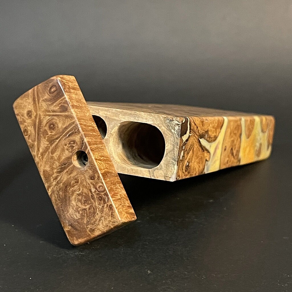 Experience the unique blend of art and nature with our Futo Galaxy Burl Stashes. These stashes, crafted from stabilized burl wood and enhanced with resin cast highlights, showcase the innate beauty of wood. Our stabilization process, particularly when combined with dyes, reveals captivating natural patterns that resemble celestial scenery. The FutoStash collection offers a limited series of these distinct, numbered pieces, where each merges the elegance of nature with a touch of cosmic wonder.