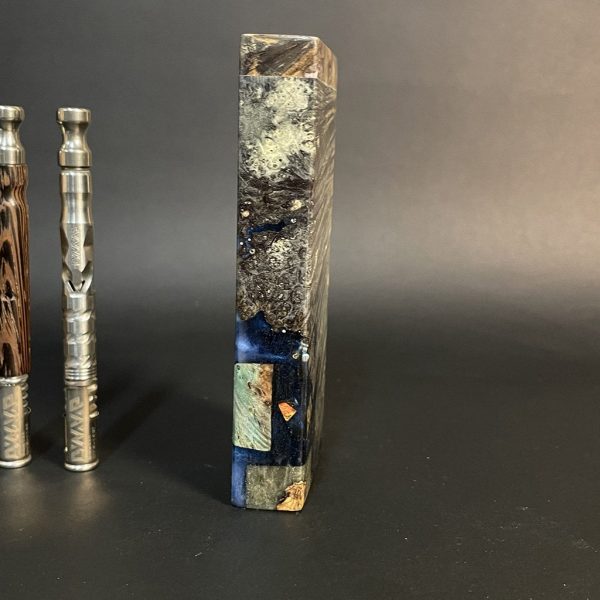 Experience the unique blend of art and nature with our Futo Galaxy Burl Stashes. These stashes, crafted from stabilized burl wood and enhanced with resin cast highlights, showcase the innate beauty of wood. Our stabilization process, particularly when combined with dyes, reveals captivating natural patterns that resemble celestial scenery. The FutoStash collection offers a limited series of these distinct, numbered pieces, where each merges the elegance of nature with a touch of cosmic wonder.