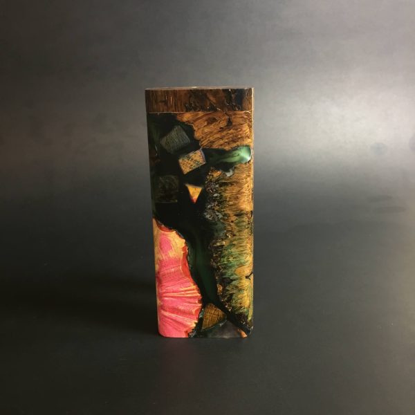 Futo Galaxy Burl Stashes are out of this world stabilized burl wood with resin cast accents. The stabilization process hardens the burl wood and if dyes are added brings out amazing natural patters in the wood – some times they look cosmic in origin.
