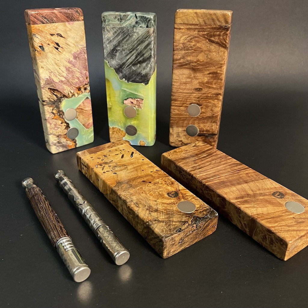 Experience the unique blend of art and nature with our Futo Galaxy Burl Stashes. These stashes, crafted from stabilized burl wood and enhanced with resin cast highlights, showcase the innate beauty of wood. Our stabilization process, particularly when combined with dyes, reveals captivating natural patterns that resemble celestial scenery. The FutoStash collection offers a limited series of these distinct, numbered pieces, where each merges the elegance of nature with a touch of cosmic wonder.