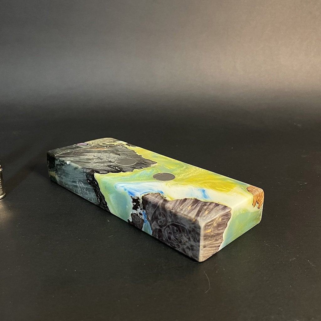 Experience the unique blend of art and nature with our Futo Galaxy Burl Stashes. These stashes, crafted from stabilized burl wood and enhanced with resin cast highlights, showcase the innate beauty of wood. Our stabilization process, particularly when combined with dyes, reveals captivating natural patterns that resemble celestial scenery. The FutoStash collection offers a limited series of these distinct, numbered pieces, where each merges the elegance of nature with a touch of cosmic wonder.