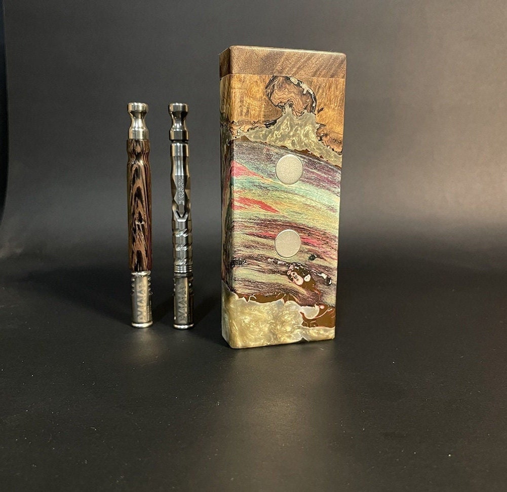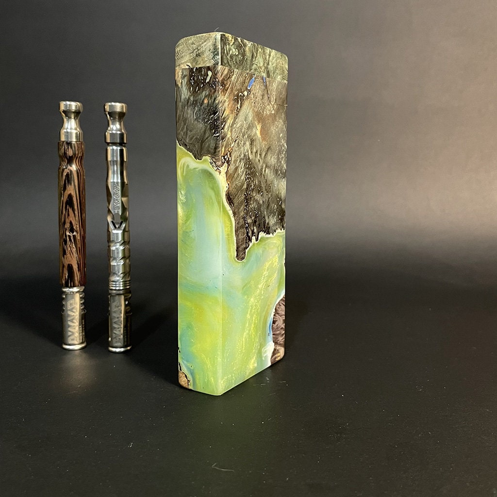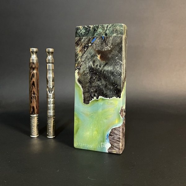 Galaxy Burl FutoStash XL G2 #4092 – Stabilized Burl & Resin – Double Vaporizer Storage – DynaVap – Simrell – Madheaters Stash Box