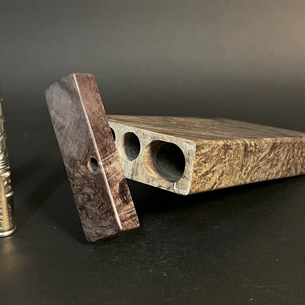 Experience the unique blend of art and nature with our Futo Galaxy Burl Stashes. These stashes, crafted from stabilized burl wood and enhanced with resin cast highlights, showcase the innate beauty of wood. Our stabilization process, particularly when combined with dyes, reveals captivating natural patterns that resemble celestial scenery. The FutoStash collection offers a limited series of these distinct, numbered pieces, where each merges the elegance of nature with a touch of cosmic wonder.