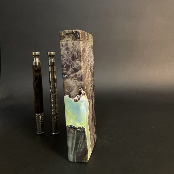 Experience the unique blend of art and nature with our Futo Galaxy Burl Stashes. These stashes, crafted from stabilized burl wood and enhanced with resin cast highlights, showcase the innate beauty of wood. Our stabilization process, particularly when combined with dyes, reveals captivating natural patterns that resemble celestial scenery. The FutoStash collection offers a limited series of these distinct, numbered pieces, where each merges the elegance of nature with a touch of cosmic wonder.