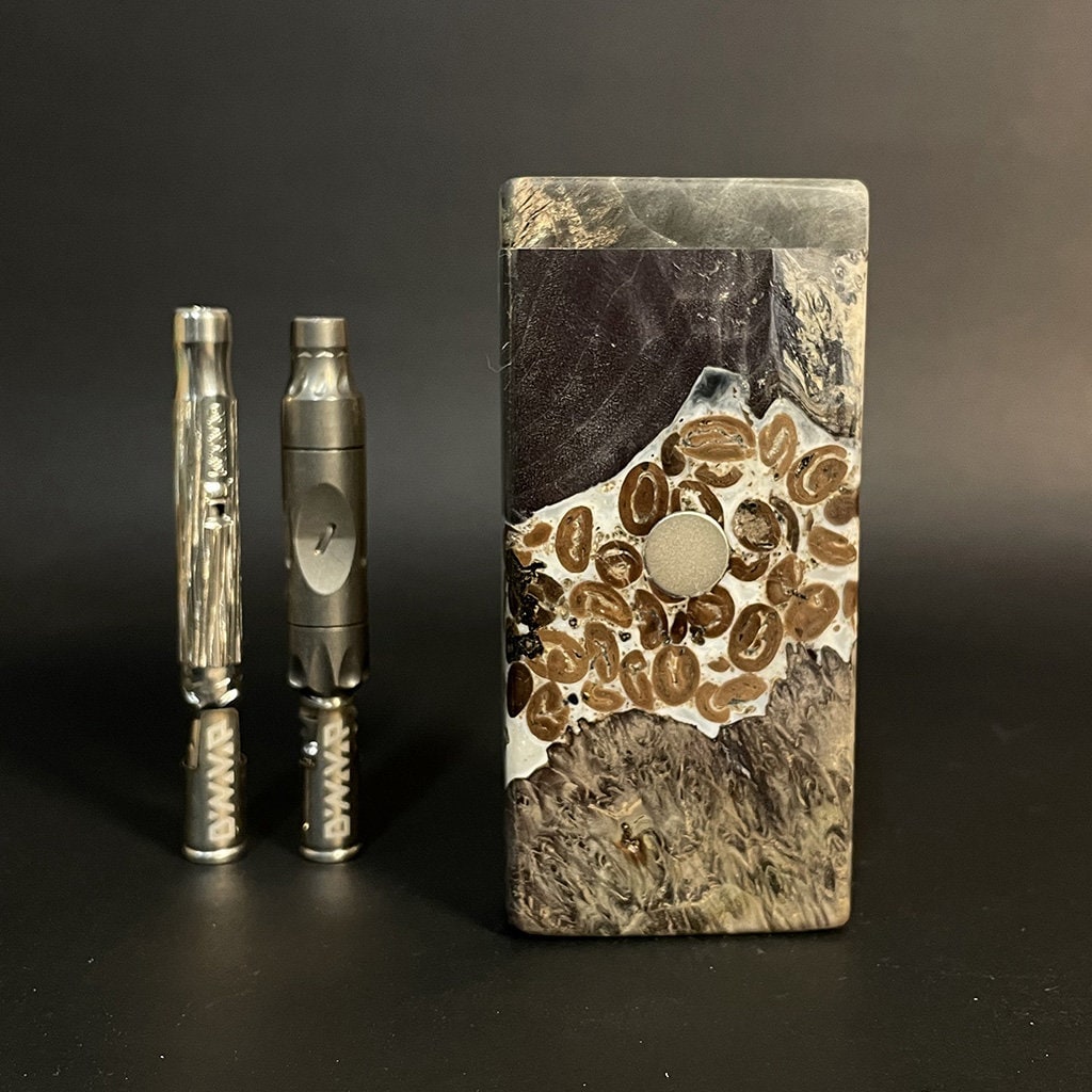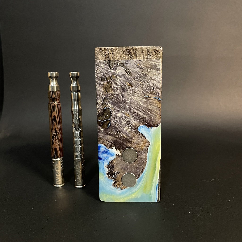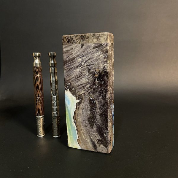 Galaxy Burl FutoStash XL G2 #4113 – Stabilized Burl & Resin – Double Vaporizer Storage – DynaVap – Simrell – Madheaters Stash Box