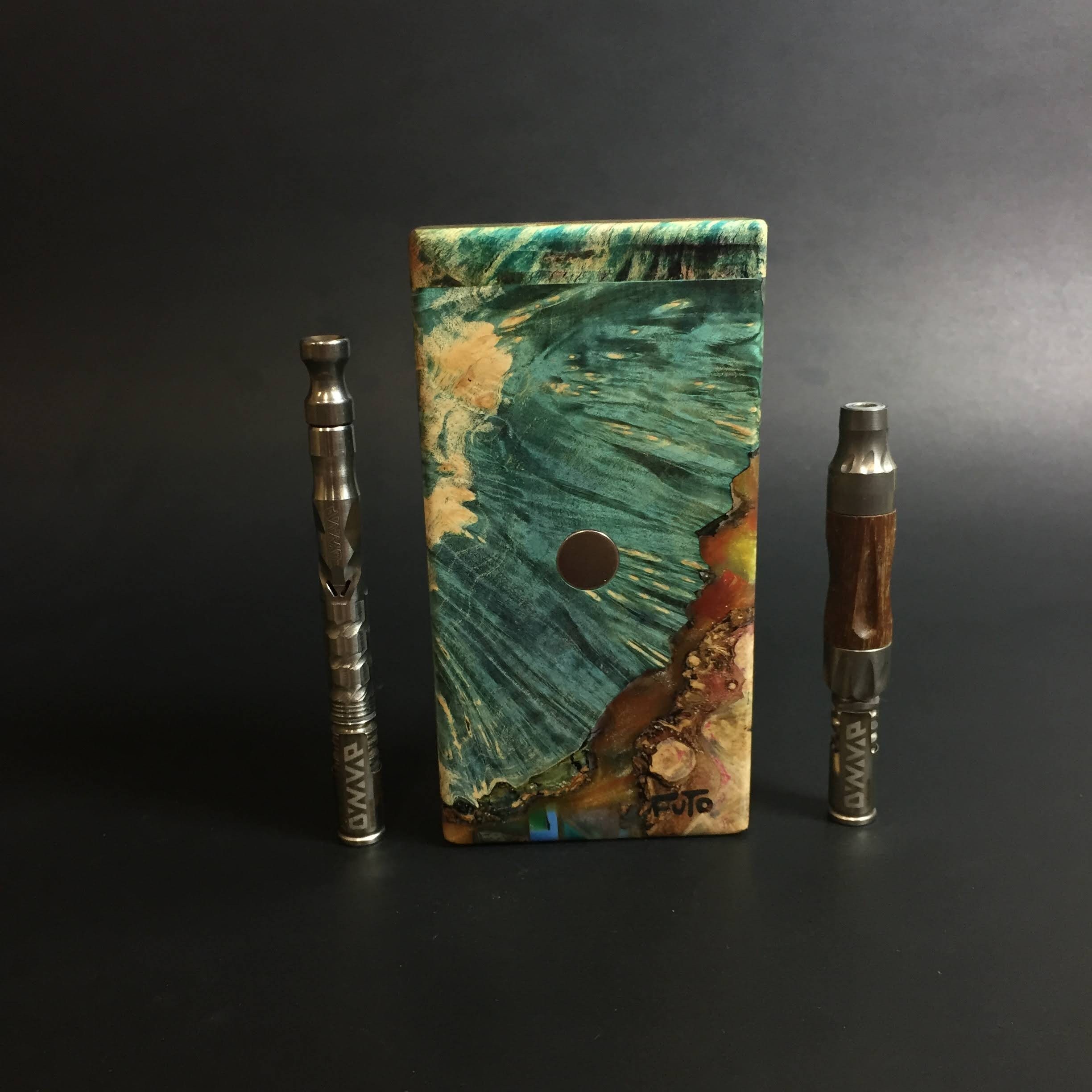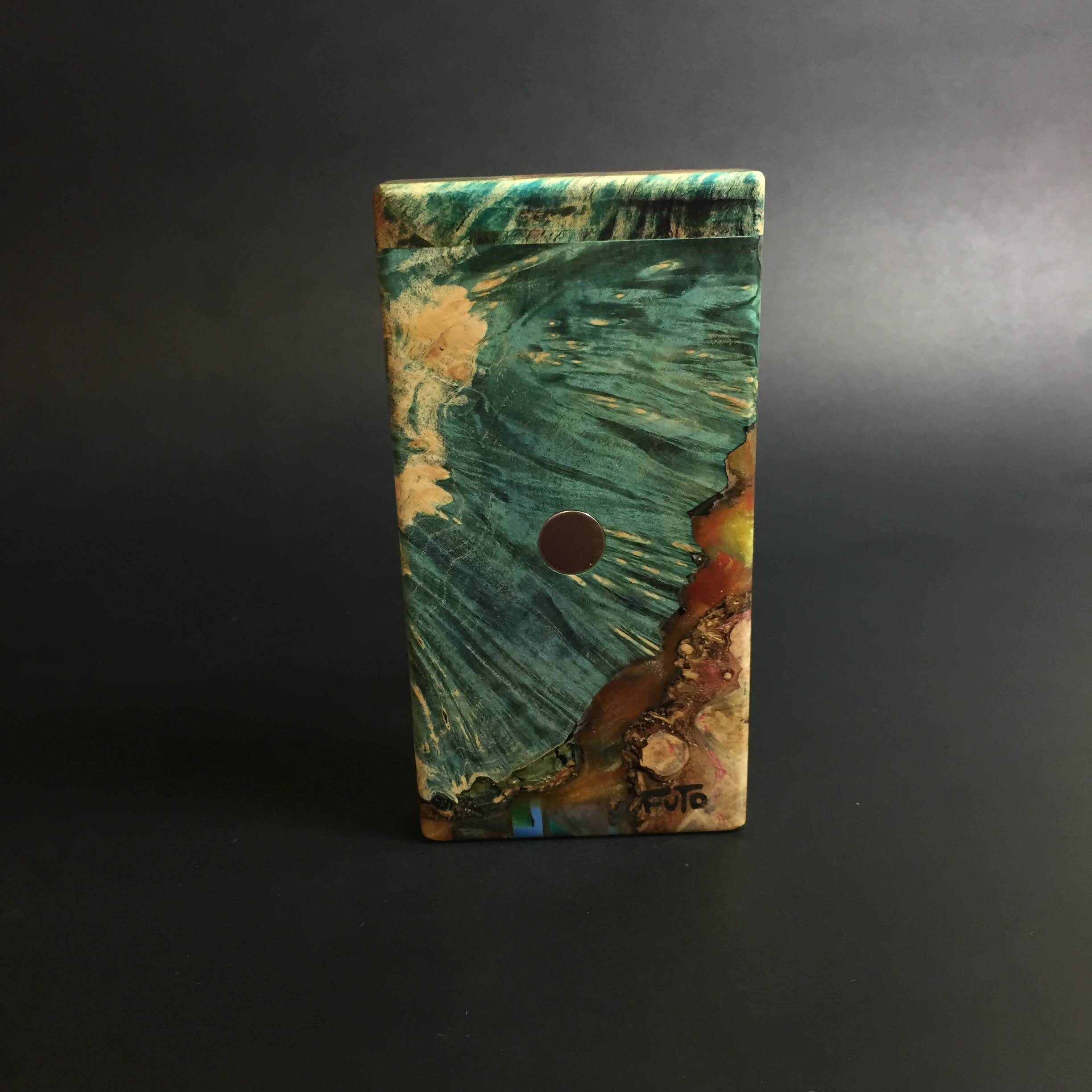 Futo Galaxy Burl Stashes are out of this world stabilized burl wood with resin cast accents. The stabilization process hardens the burl wood and if dyes are added brings out amazing natural patters in the wood – some times they look cosmic in origin.