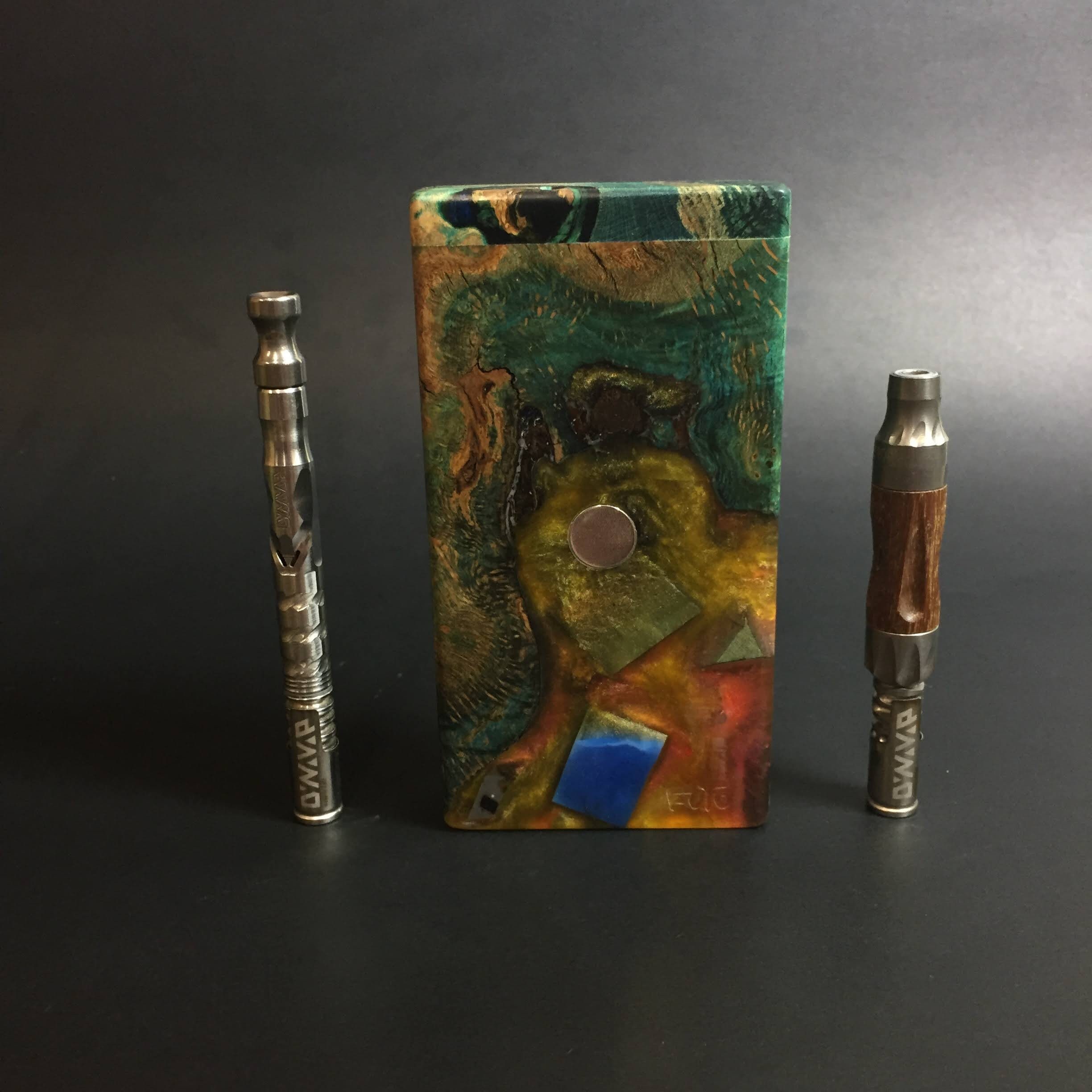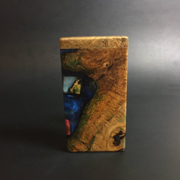 Futo Galaxy Burl Stashes are out of this world stabilized burl wood with resin cast accents. The stabilization process hardens the burl wood and if dyes are added brings out amazing natural patters in the wood – some times they look cosmic in origin.