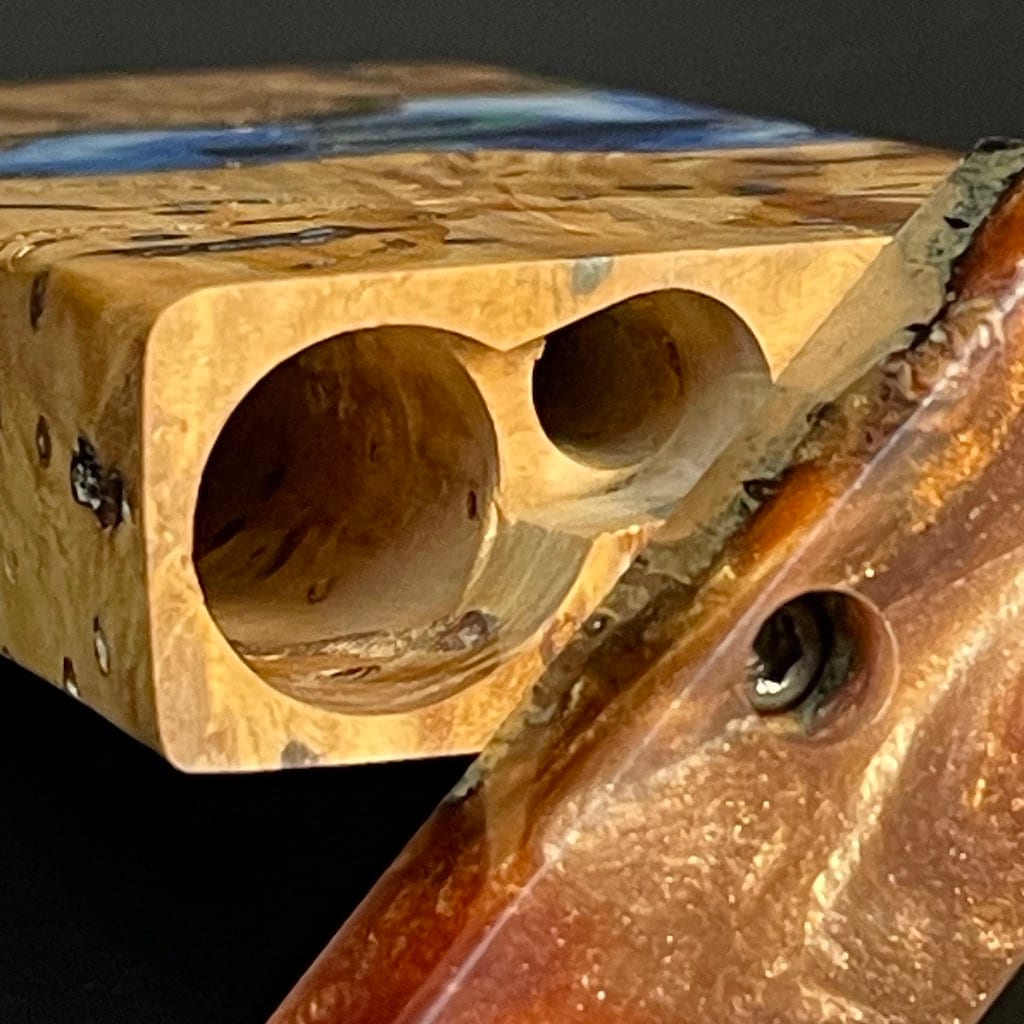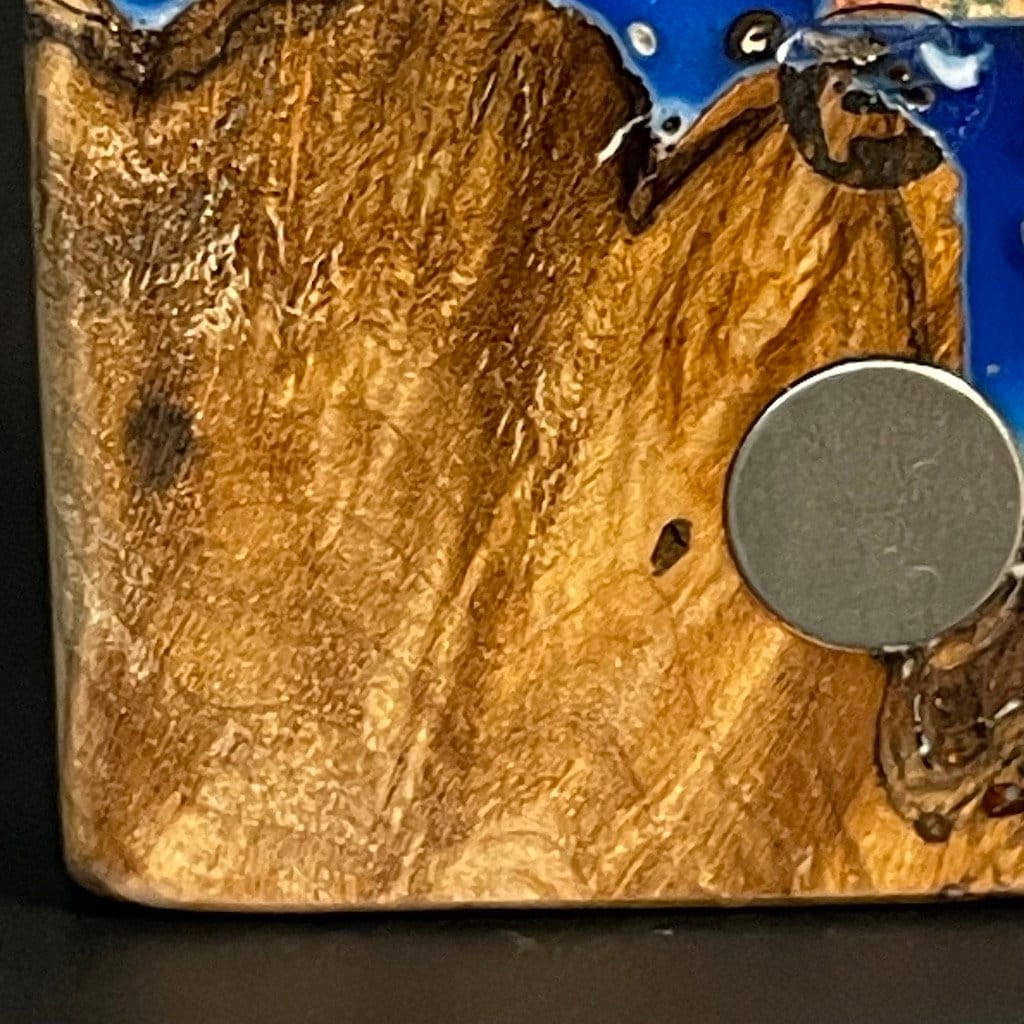 Experience the fusion of nature and artistry with our Futo Galaxy Burl Stashes. Crafted from stabilized burl wood and adorned with resin cast highlights, each piece is a testament to durability and beauty. Our stabilization method not only solidifies the wood but also, when dyes are added, reveals mesmerizing patterns akin to cosmic wonders. Our FutoStash range features a limited series of these unique, numbered marvels, blending natural elegance with celestial inspiration.