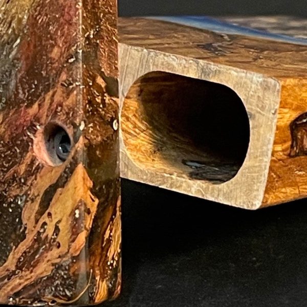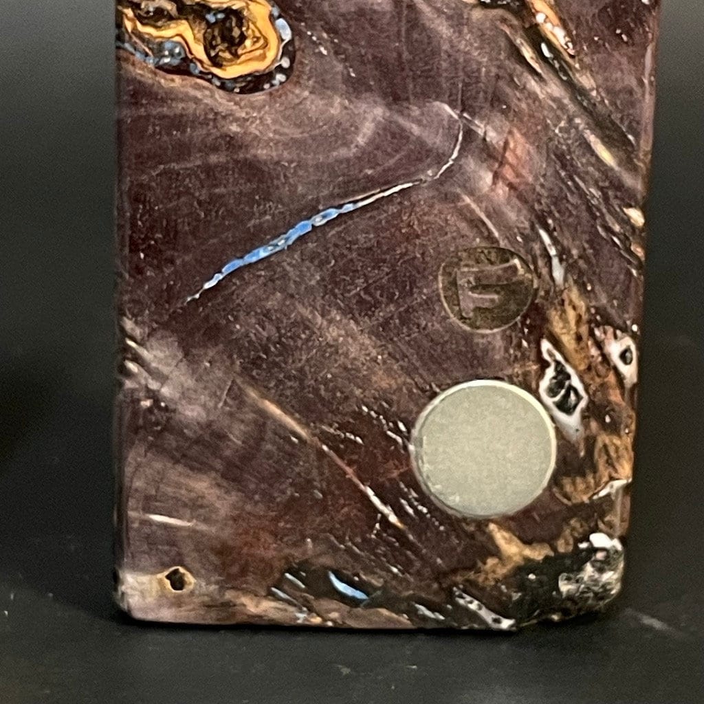 Experience the fusion of nature and artistry with our Futo Galaxy Burl Stashes. Crafted from stabilized burl wood and adorned with resin cast highlights, each piece is a testament to durability and beauty. Our stabilization method not only solidifies the wood but also, when dyes are added, reveals mesmerizing patterns akin to cosmic wonders. Our FutoStash range features a limited series of these unique, numbered marvels, blending natural elegance with celestial inspiration.