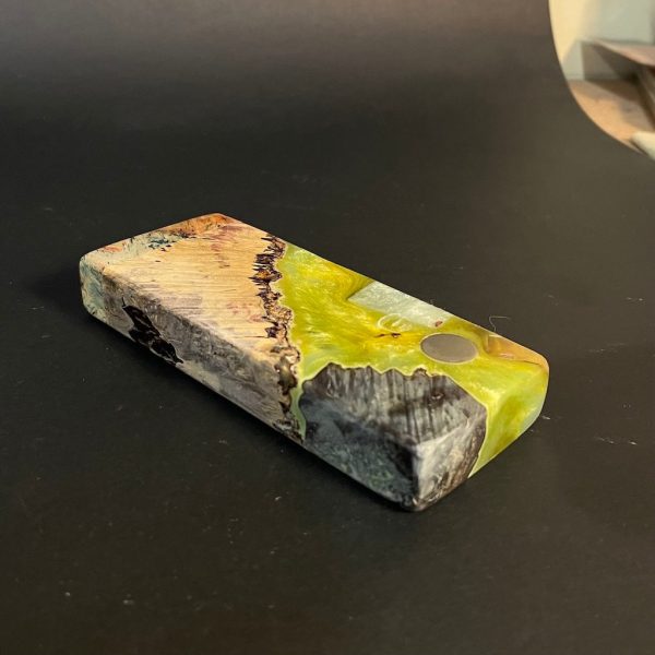 Experience the unique blend of art and nature with our Futo Galaxy Burl Stashes. These stashes, crafted from stabilized burl wood and enhanced with resin cast highlights, showcase the innate beauty of wood. Our stabilization process, particularly when combined with dyes, reveals captivating natural patterns that resemble celestial scenery. The FutoStash collection offers a limited series of these distinct, numbered pieces, where each merges the elegance of nature with a touch of cosmic wonder.
