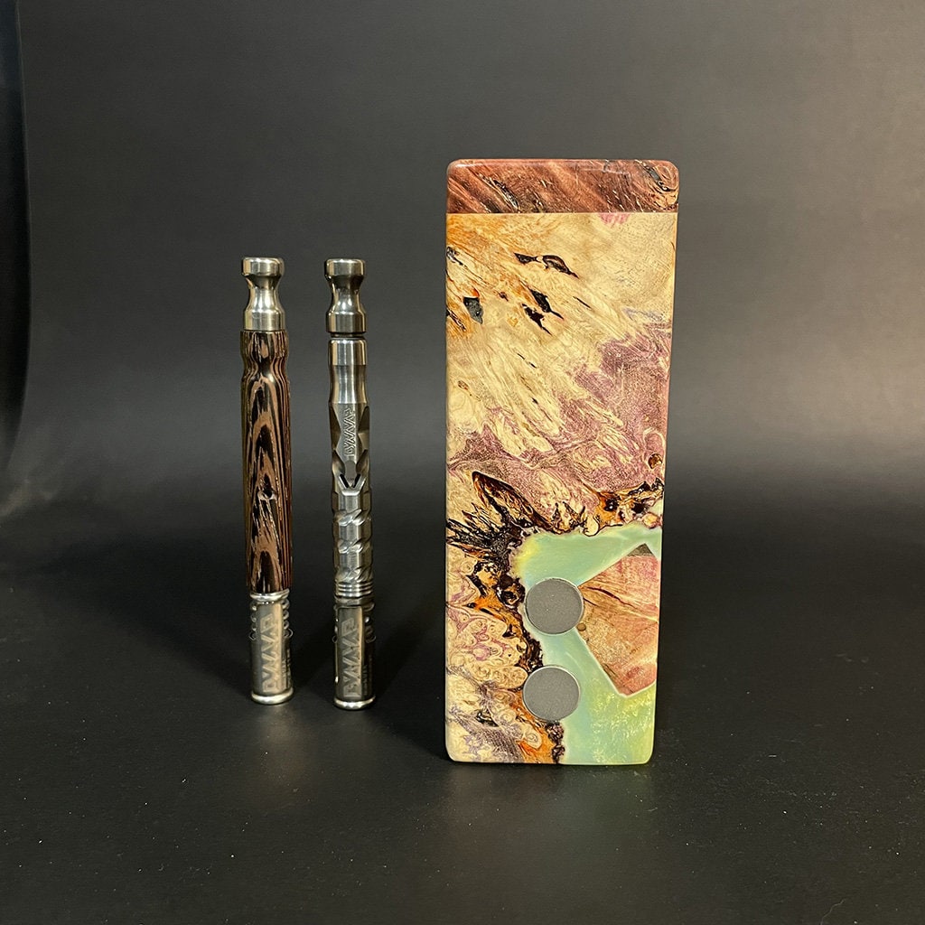 Galaxy Burl FutoStash ZXL #4109 – Stabilized Burl & Resin – Double Vaporizer Storage – DynaVap – Simrell – Madheaters Stash Box