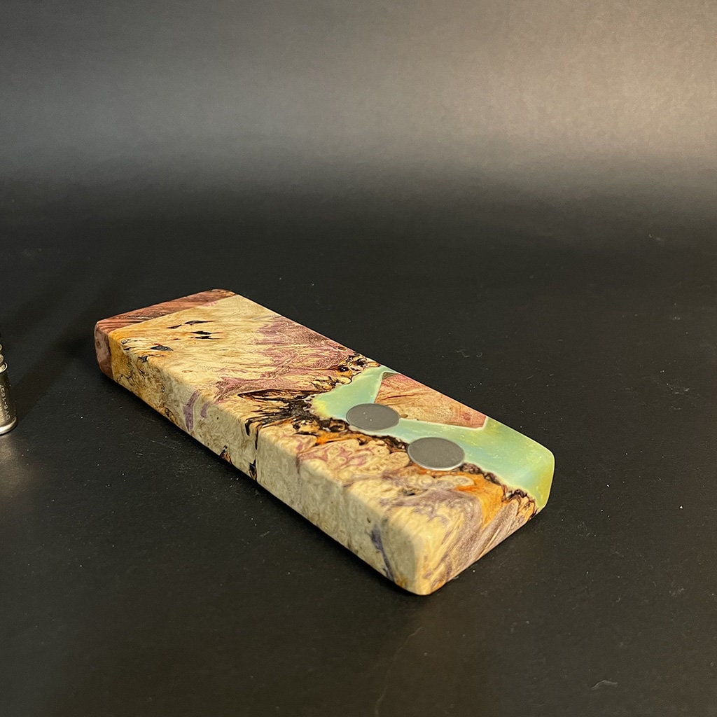 Experience the unique blend of art and nature with our Futo Galaxy Burl Stashes. These stashes, crafted from stabilized burl wood and enhanced with resin cast highlights, showcase the innate beauty of wood. Our stabilization process, particularly when combined with dyes, reveals captivating natural patterns that resemble celestial scenery. The FutoStash collection offers a limited series of these distinct, numbered pieces, where each merges the elegance of nature with a touch of cosmic wonder.