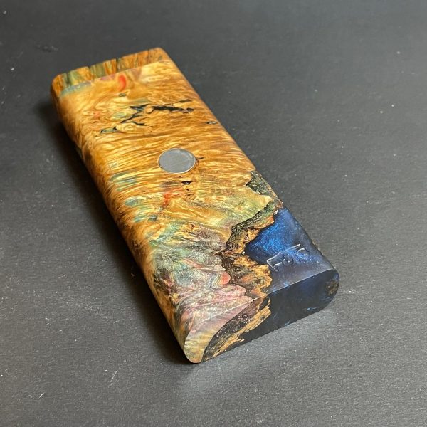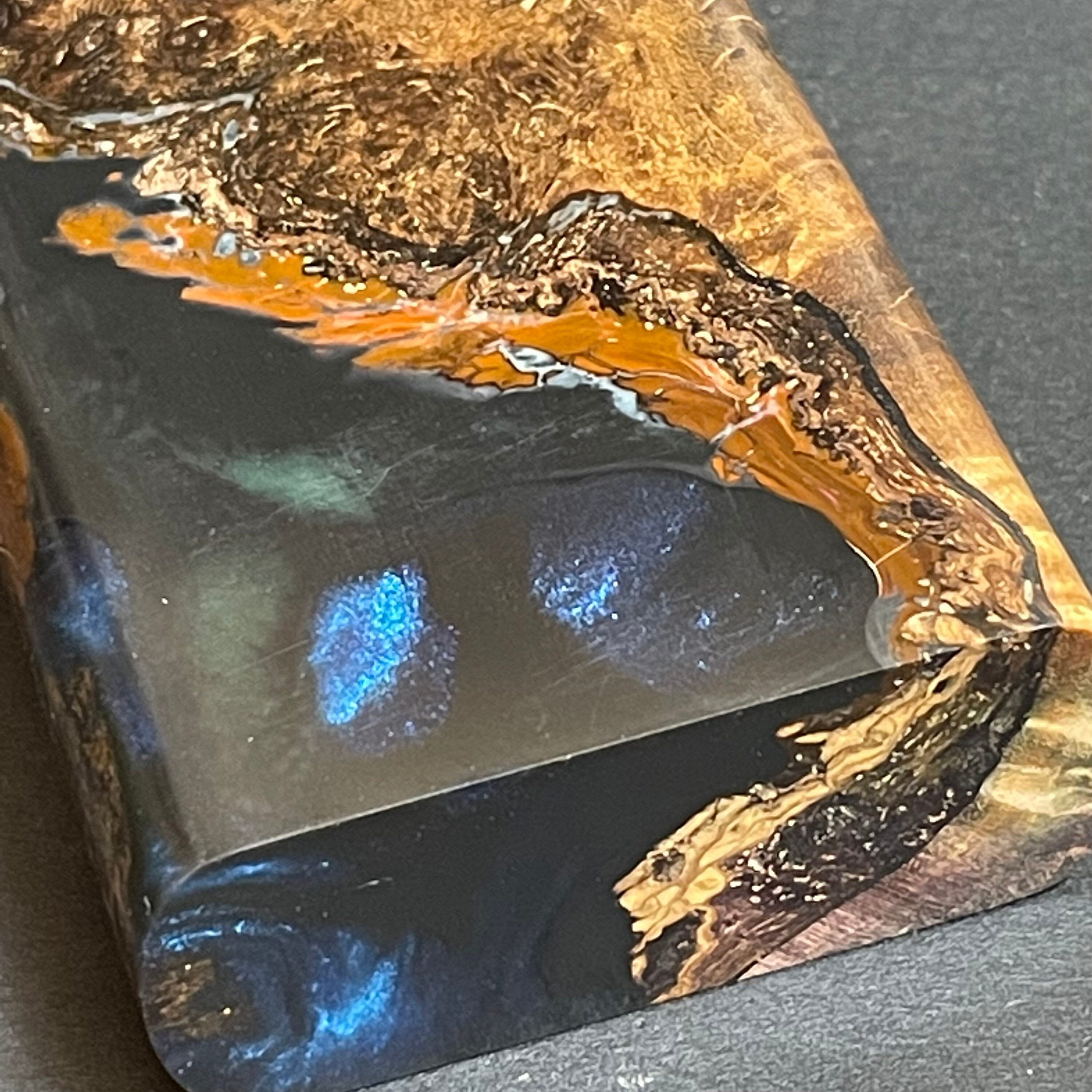 Futo Galaxy Burl Stashes are out of this world stabilized burl wood with resin cast accents. The stabilization process hardens the burl wood and if dyes are added brings out amazing natural patters in the wood – some times they look cosmic in origin.