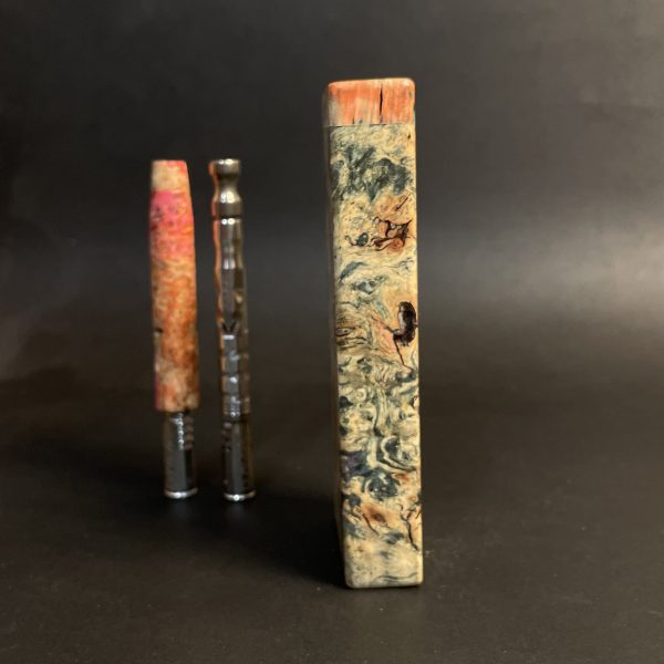Futo Galaxy Burl Stashes are out of this world stabilized burl wood with resin cast accents. The stabilization process hardens the burl wood and if dyes are added brings out amazing natural patters in the wood – some times they look cosmic in origin.