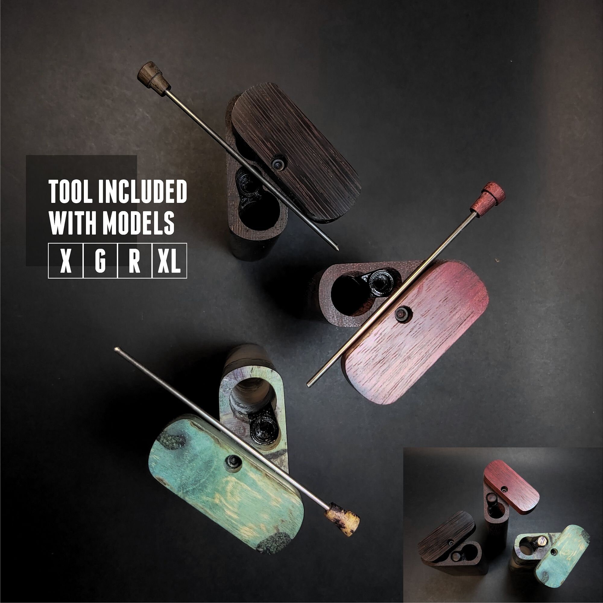 Traditionally called a dugout or one hitter box, at Futo we’ve reinvented this form as the FutoStash X – and the design includes new features like 3d printed interior that perfectly holds the glass hitter and matching wood handled stash tool. We ship standard with a 9mm glass one hitter, custom ground with a bevel to make loading in the herb stash easy. The Stash Tool can be used to clean your hitter or stir your stash.