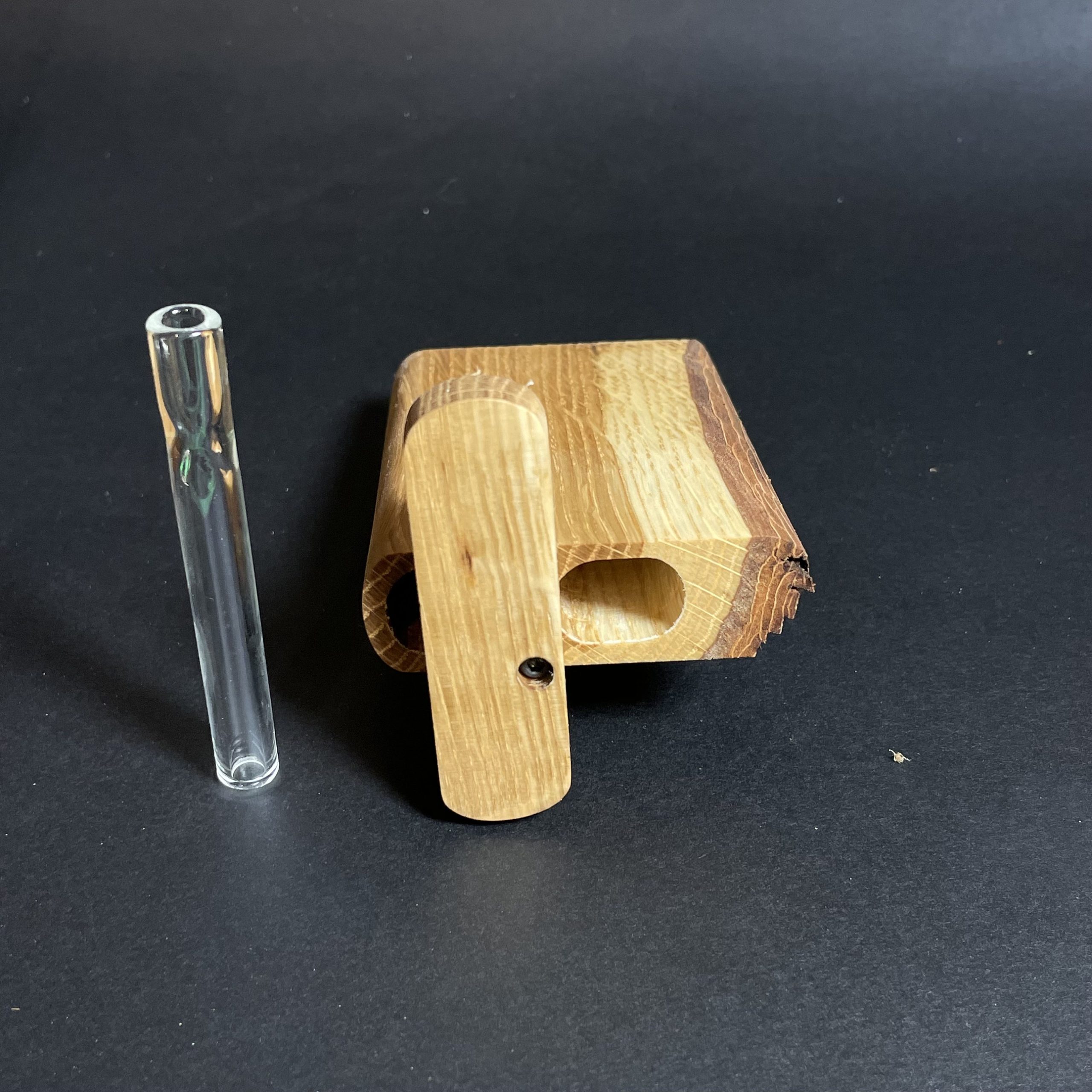 Live Edge Oak – FutoStash X #3741 – One Hitter Box – Dugout – 9mm Glass One Hitter