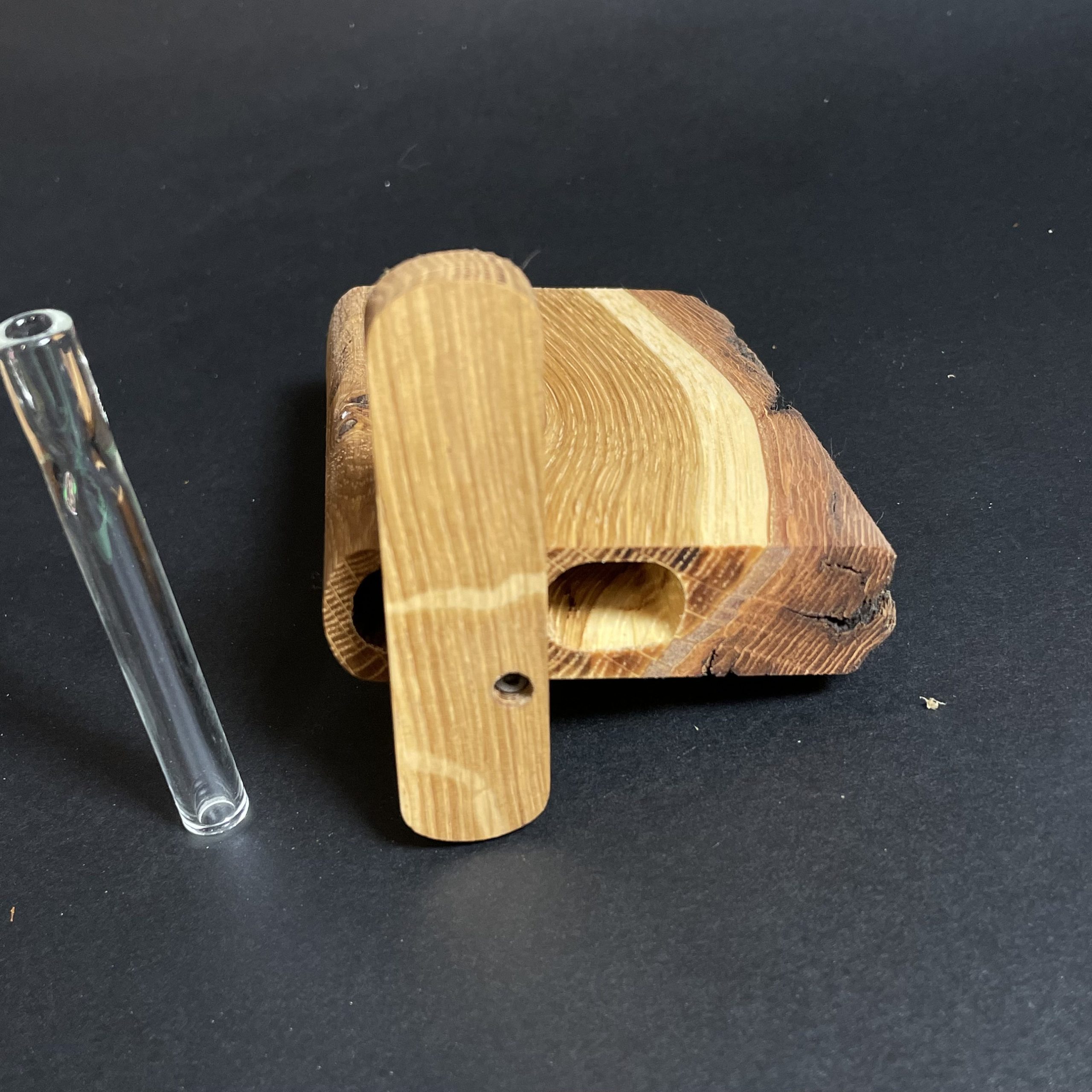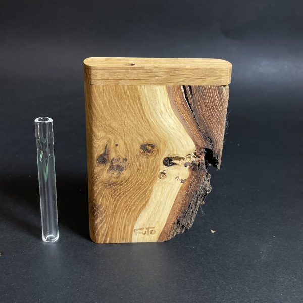 Live Edge Oak – FutoStash X #3743 – One Hitter Box – Dugout – 9mm Glass One Hitter