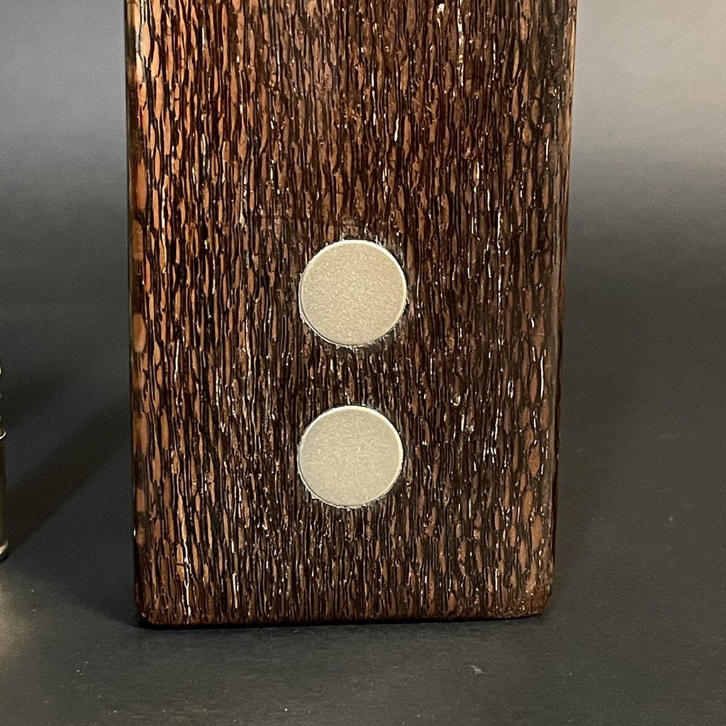 Crafted from the exclusive, limited edition stabilized Leopardwood, this piece is a result of a meticulous stabilization process that spans several months. This process infuses the wood, enhancing its weight and gloss for a more luxurious feel. The application of black dye and hardener is carefully concentrated in the softer regions around the distinctive spots, accentuating their prominence far beyond that of standard Leopardwood, creating an extraordinary and unique visual appeal.